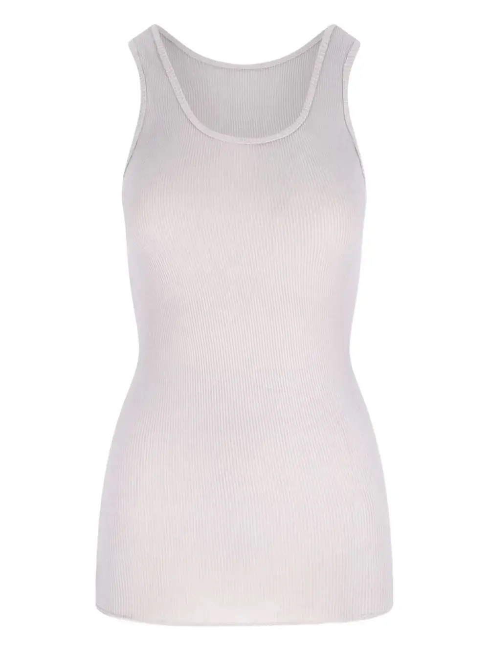 Серый в рубчик трикотажный топ без рукавов с круглым вырезом и прошивкой