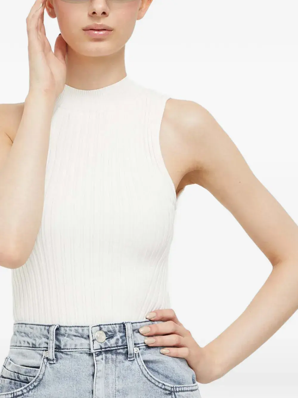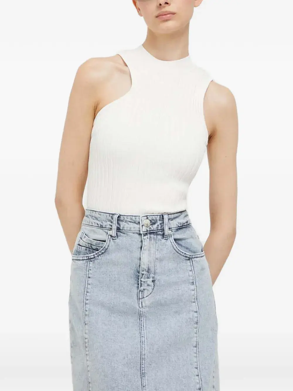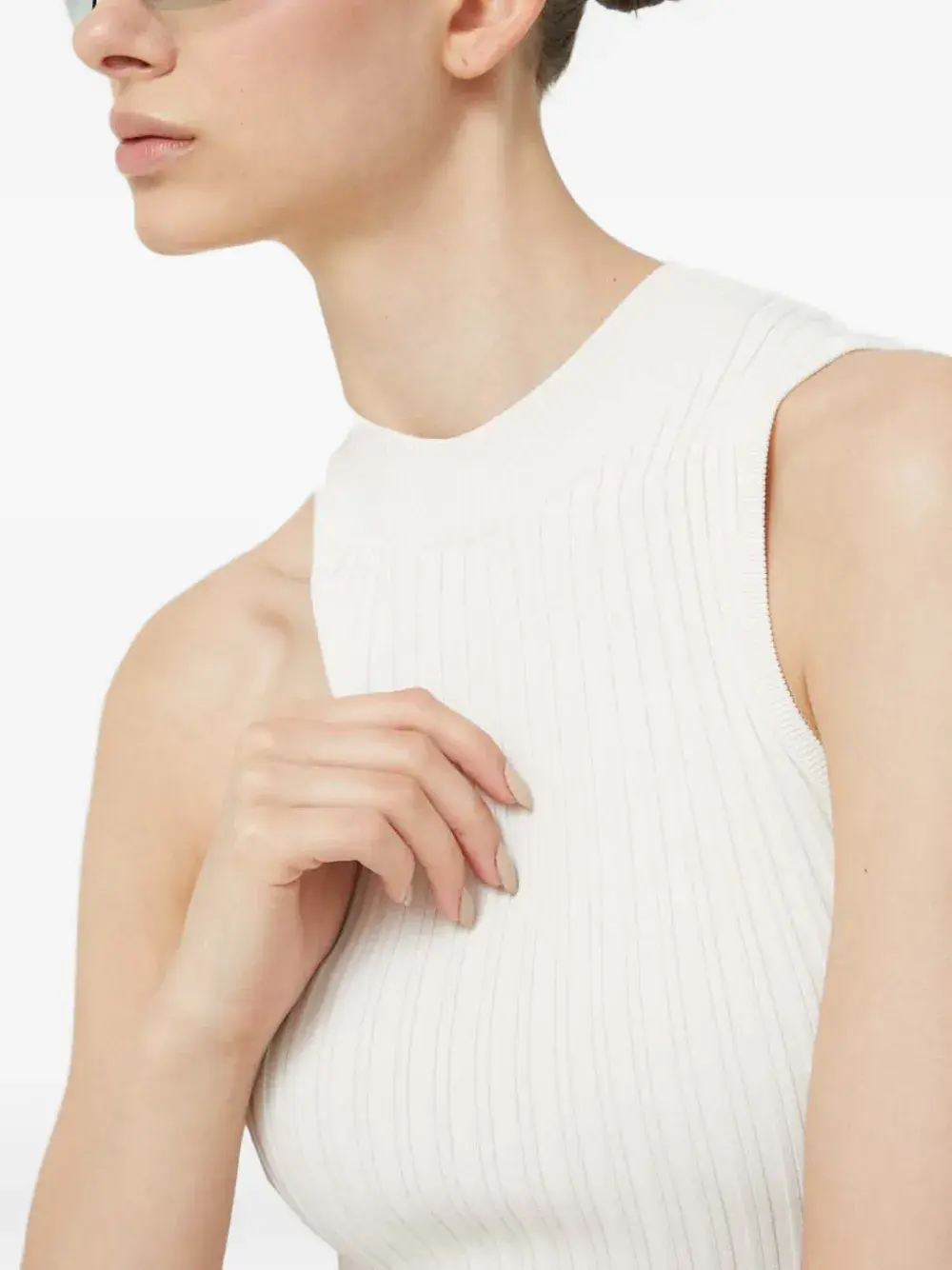 Безрукавка цвета "оф-вайт" из ребристого трикотажа с вырезами и прямым подолом