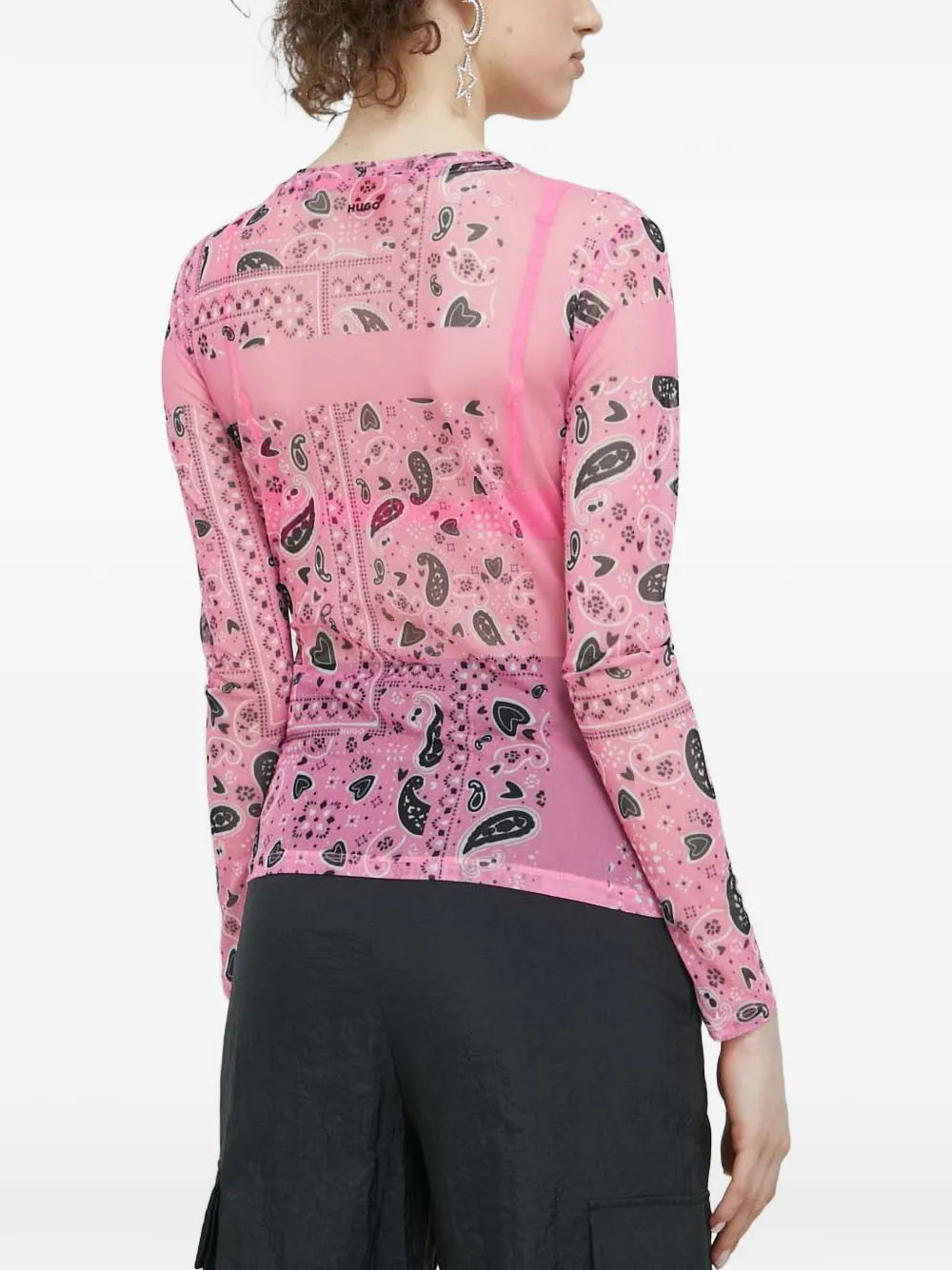 Топ с длинными рукавами с узором "пейсли" Hugo, розовый