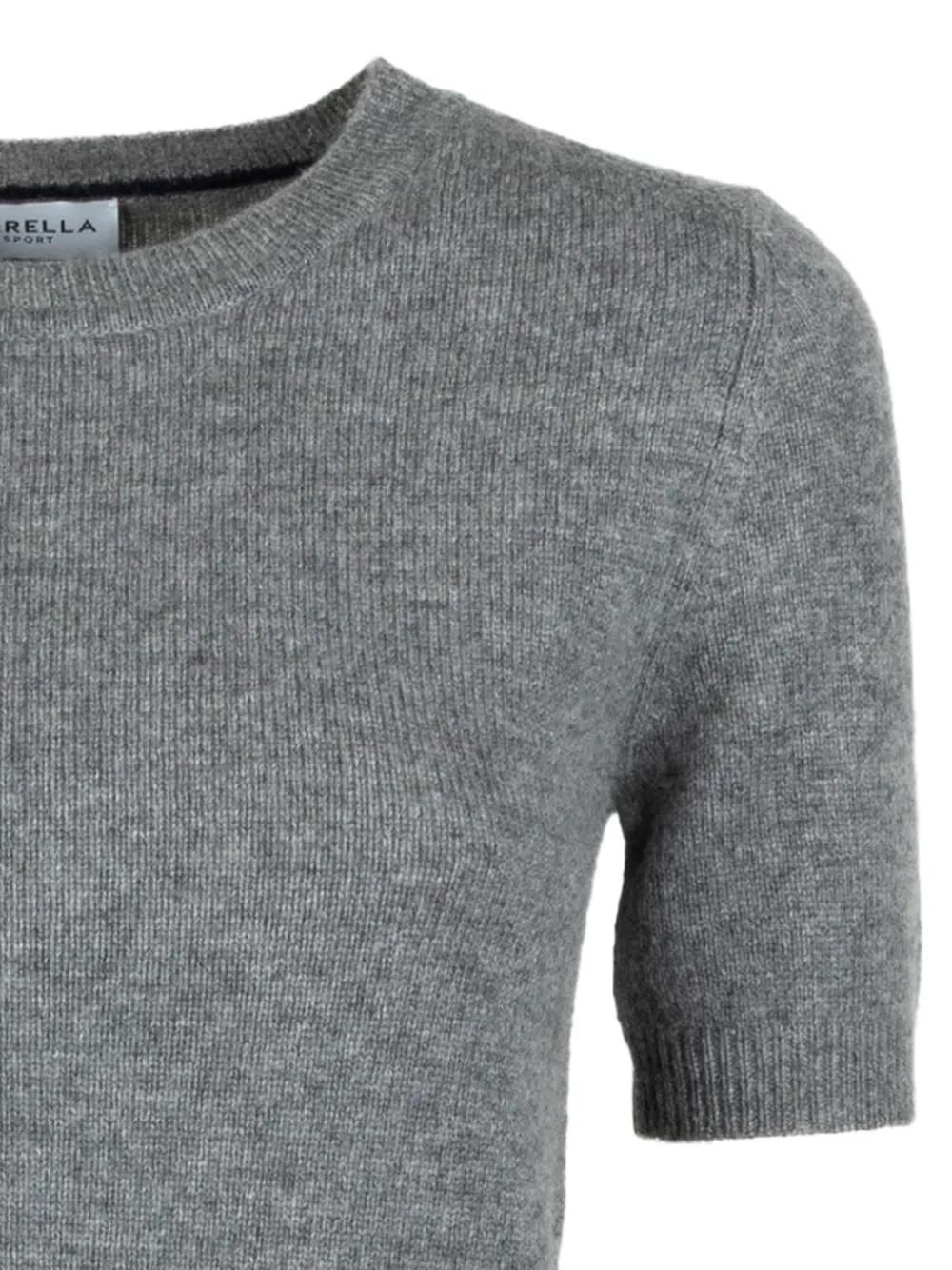 Серый круглый вырез короткие рукава смесь шерсти и кашемира