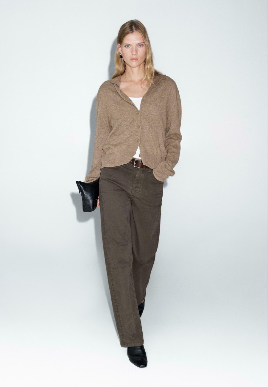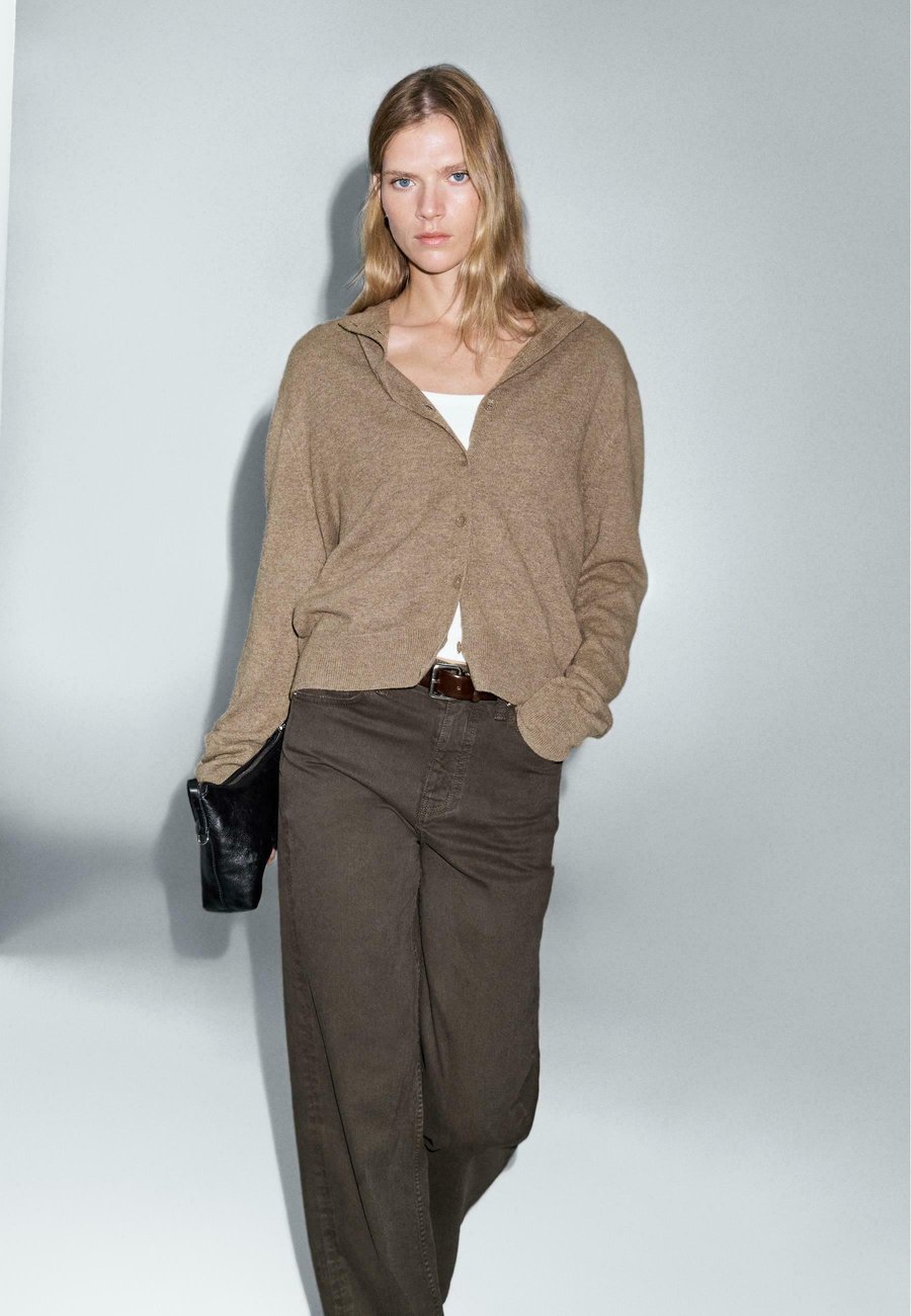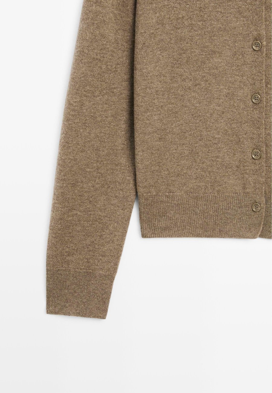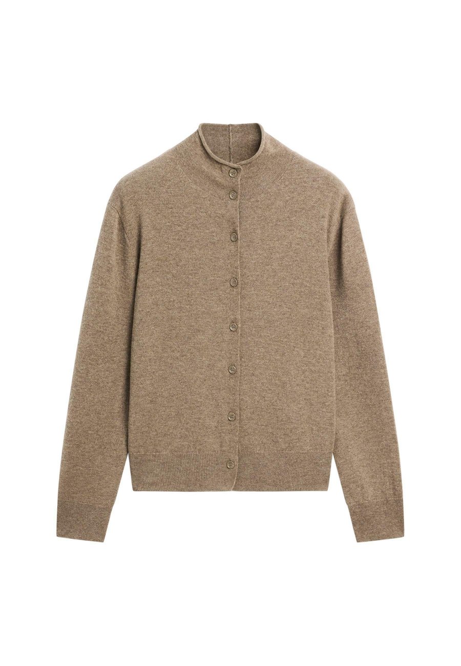 Ребристая отделка. Высокий воротник. Кардиган из 100% шерсти. Застежка на пуговицы спереди. Воротник: Воротник-стойкаМатериал и уход