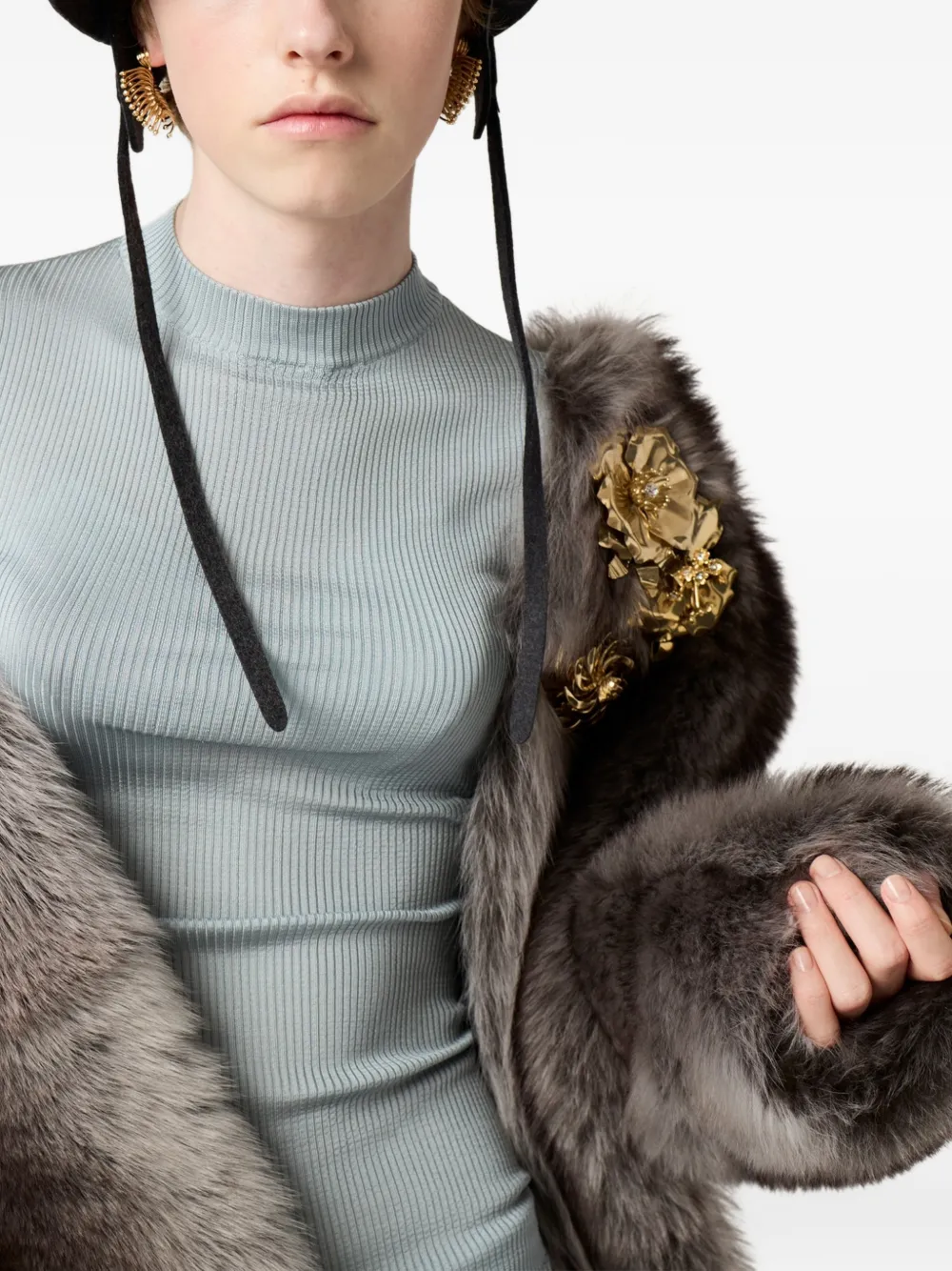 Футболка в рубчик с нашивкой-логотипом Miu Miu, синий