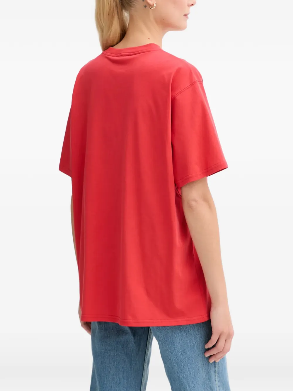 Красная футболка с накладными карманами, декоративными элементами, круглым вырезом и короткими рукавами