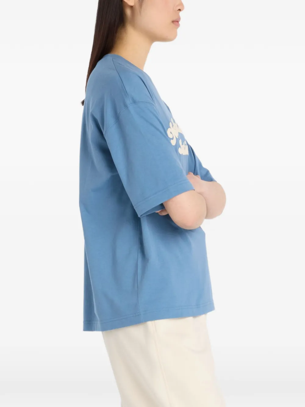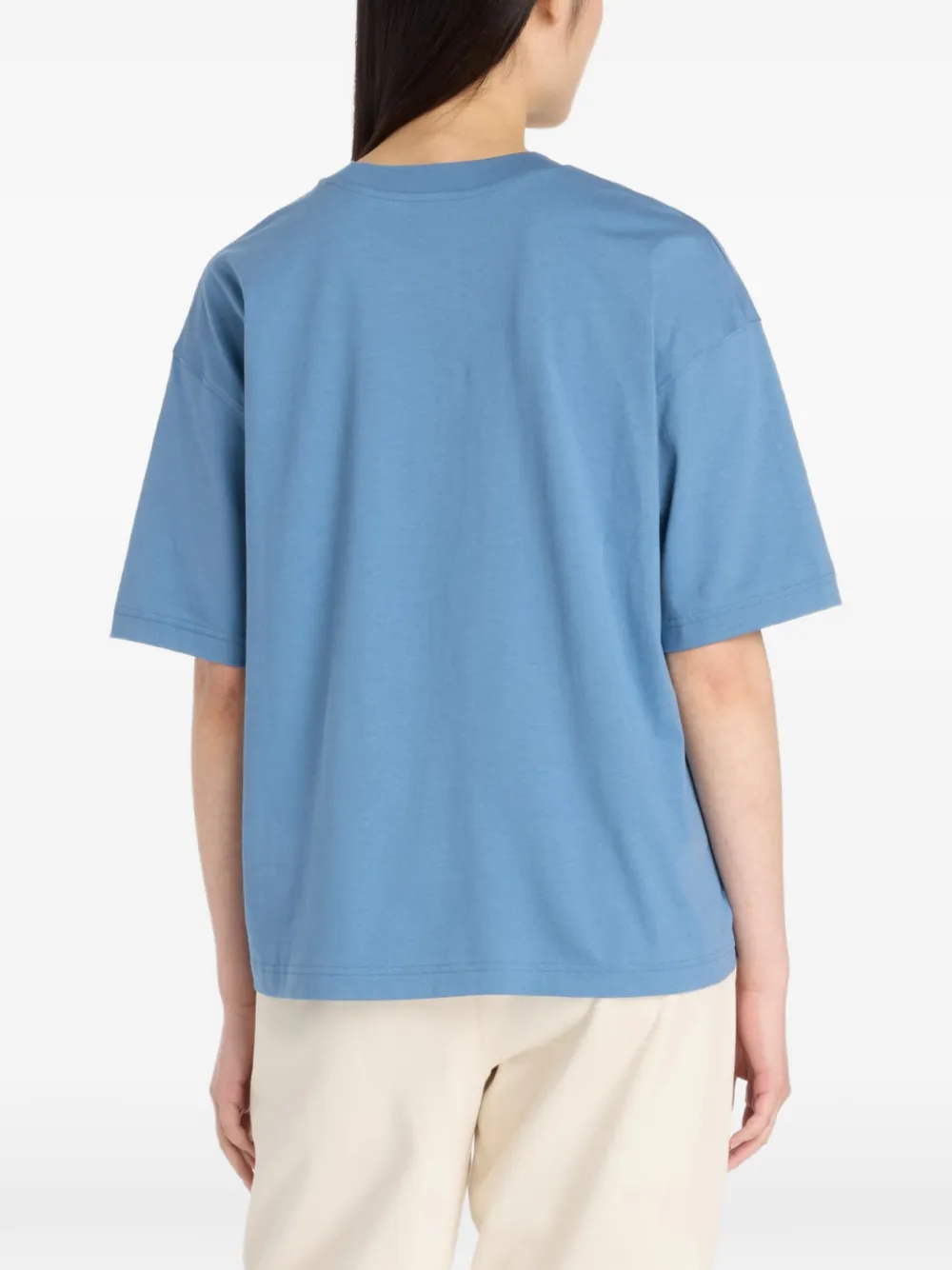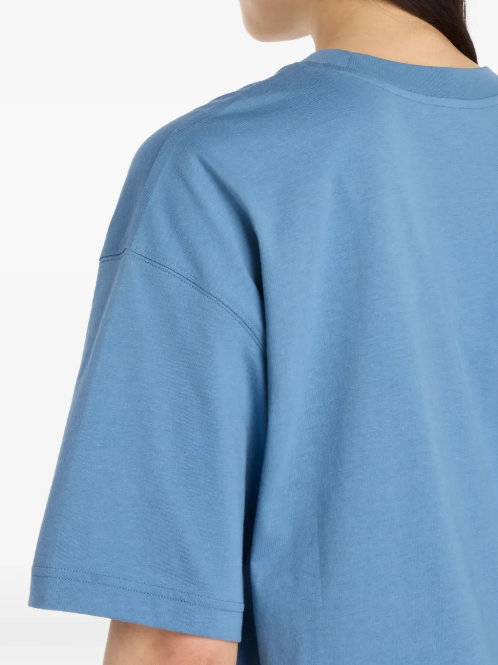 Синяя футболка с логотипом, круглым вырезом и короткими рукавами
