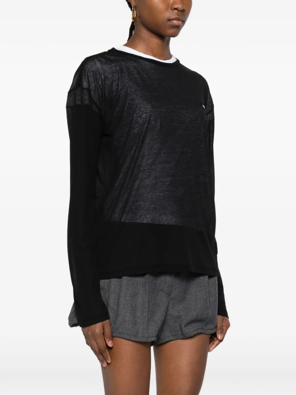 Черный свитер с круглым вырезом, длинными рукавами и деталями с логотипом