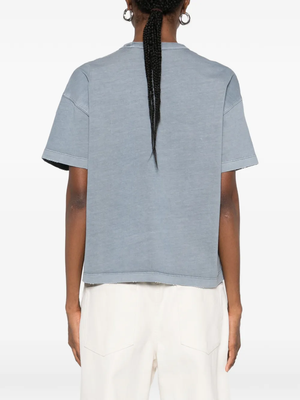 Синяя футболка с короткими рукавами и круглым вырезом
