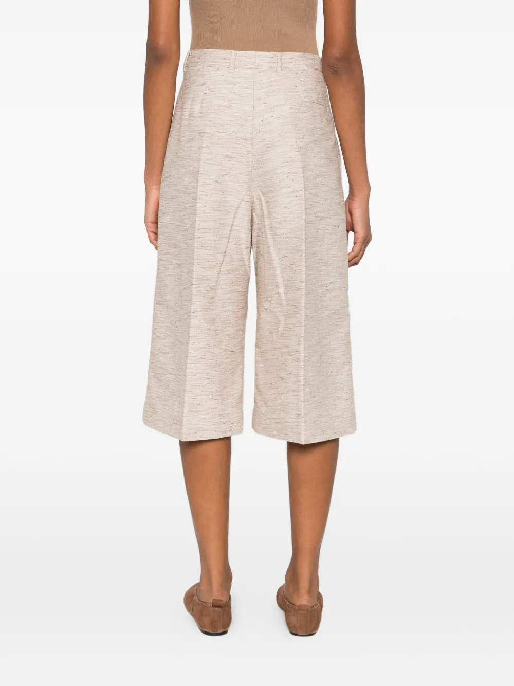 Бежевые с плиссированными деталями, боковыми карманами и скрытой застёжкой