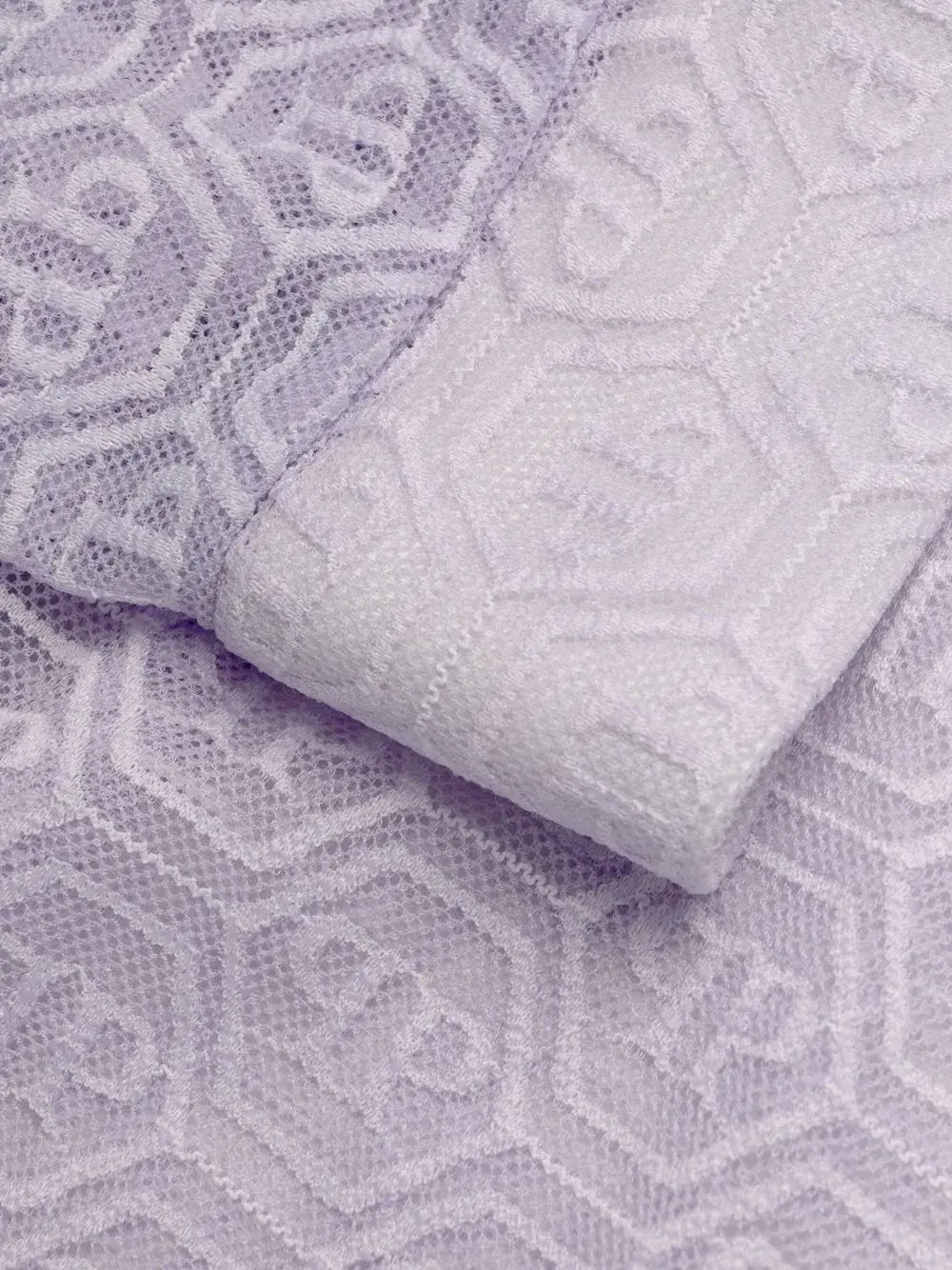 Сетчатый тюль, узор с изображением монограммы, эластичный пояс, завышенная талия, узкий крой и эластичная модель.