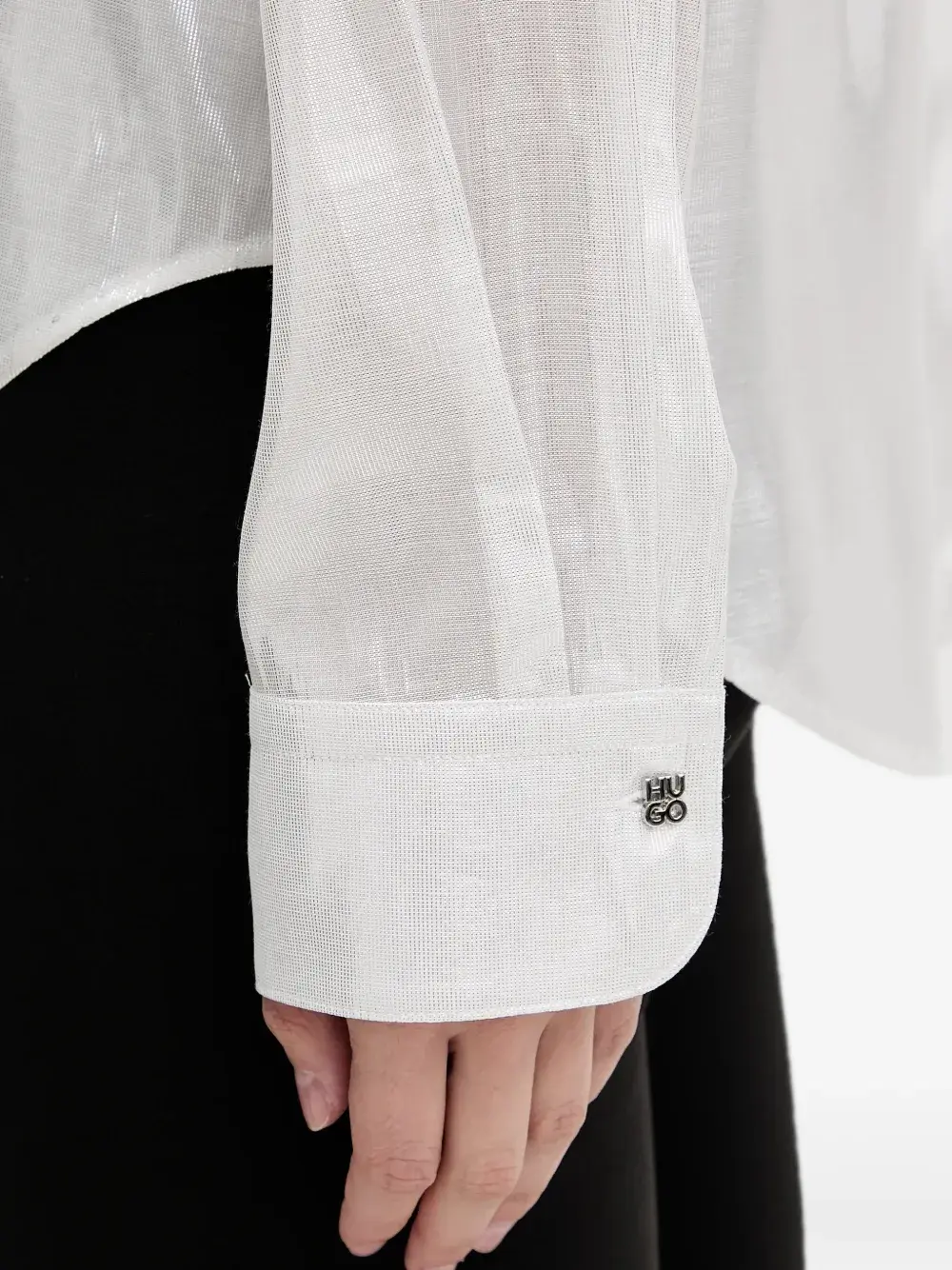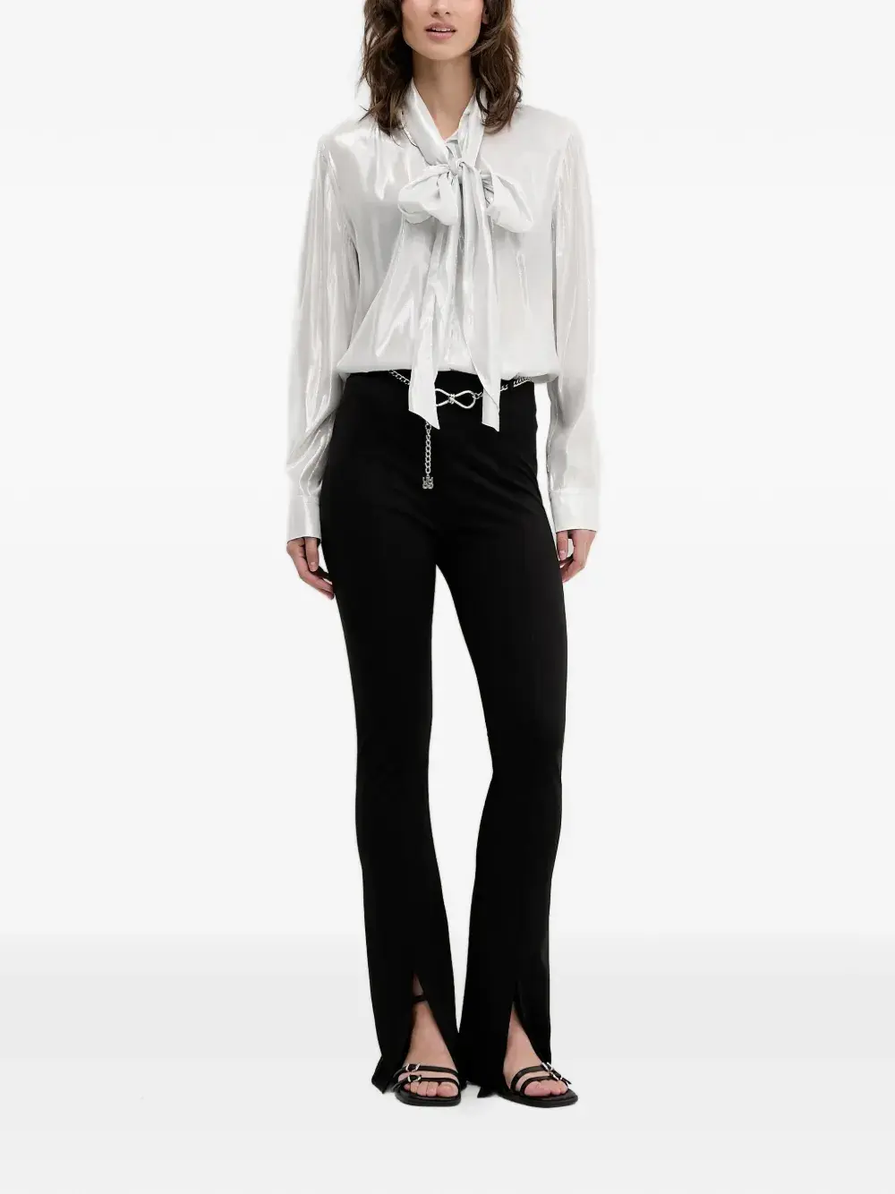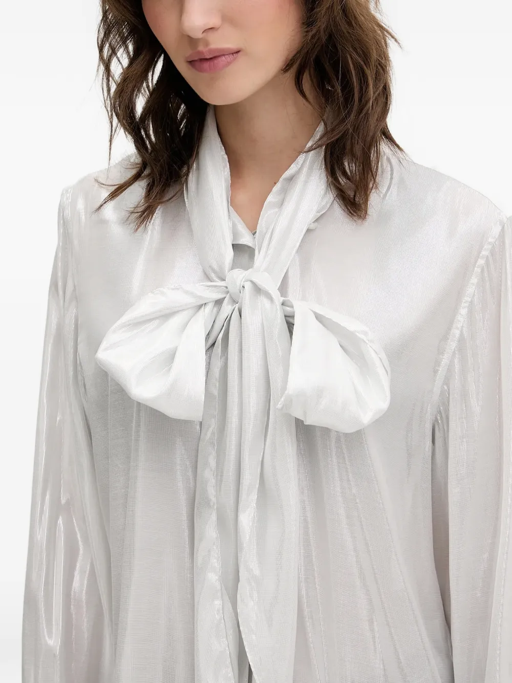 Белый бант, манжеты на пуговицах, длинные рукава, застёгивается на пуговицы