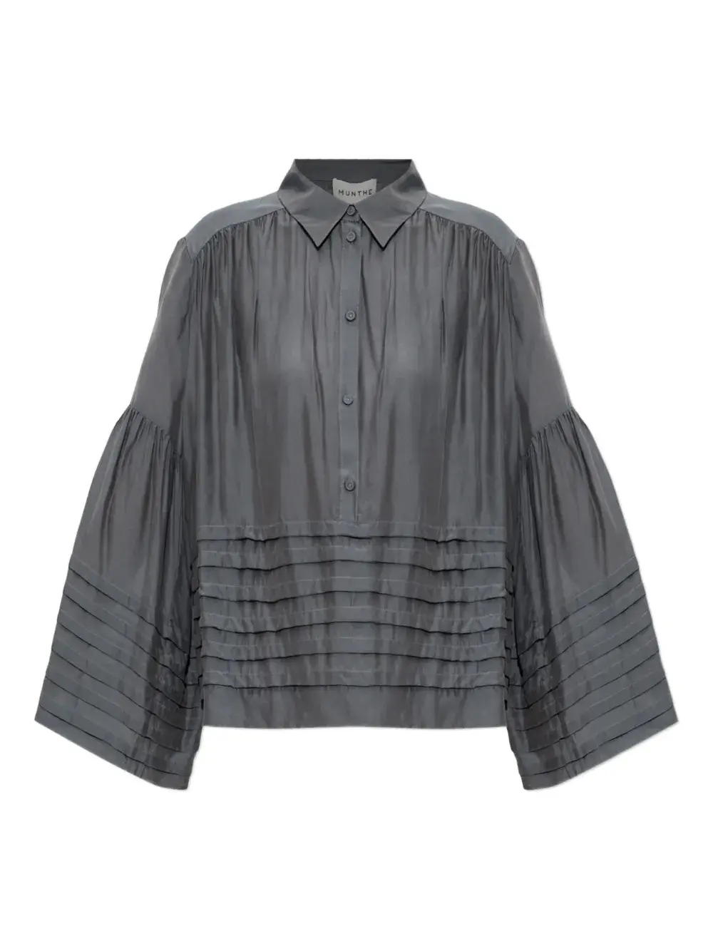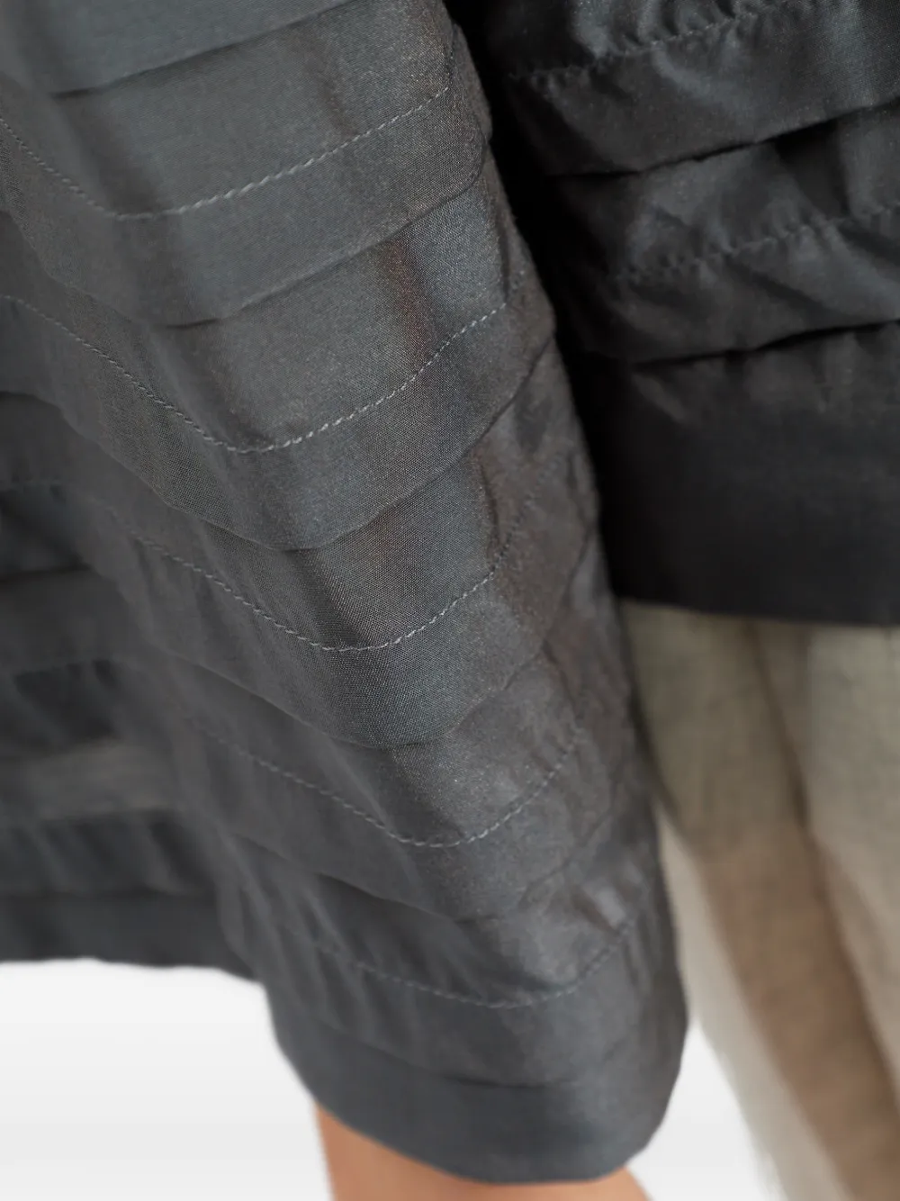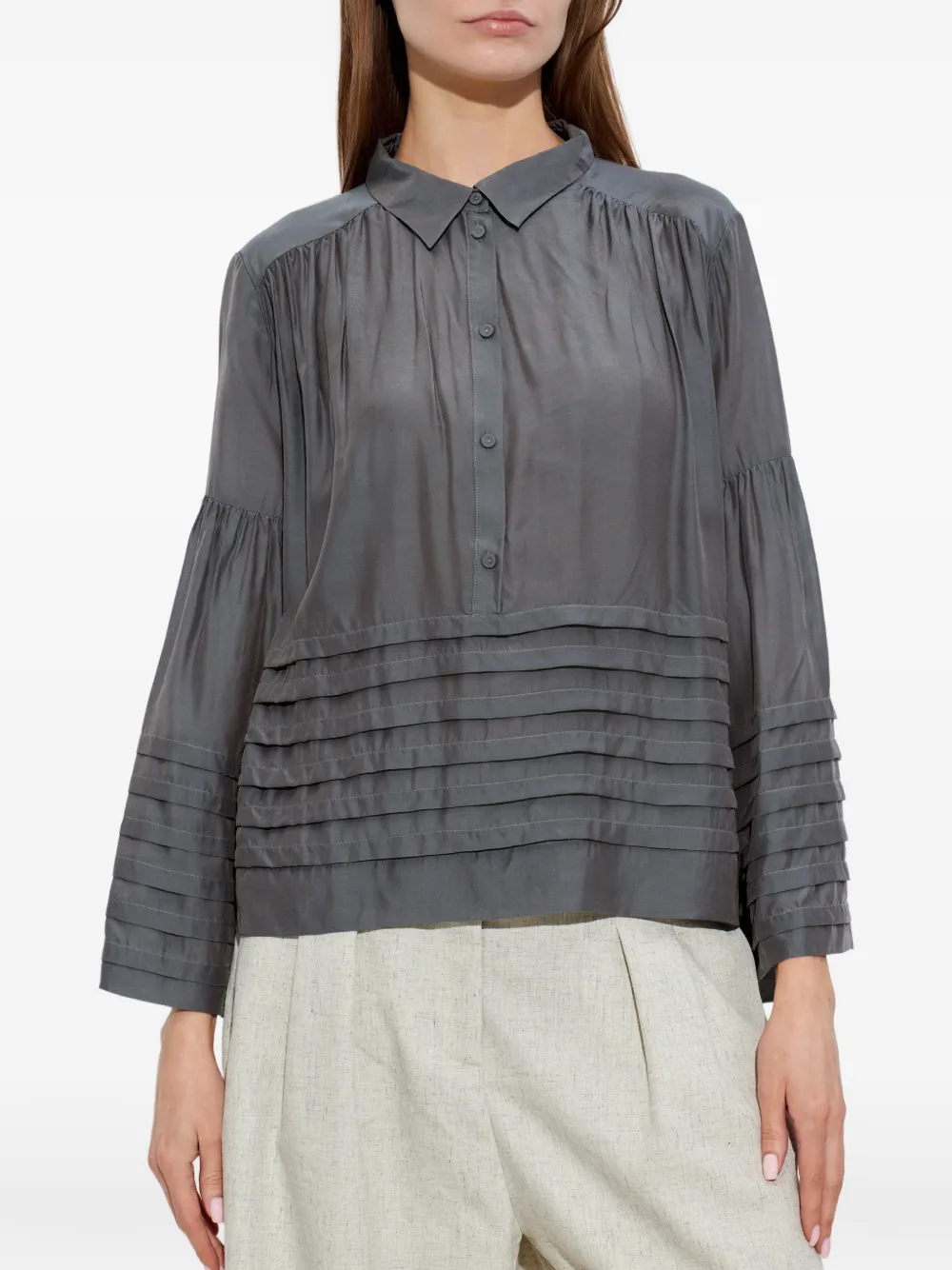 Серый с застежкой на пуговицы, многоярусными деталями и длинными рукавами