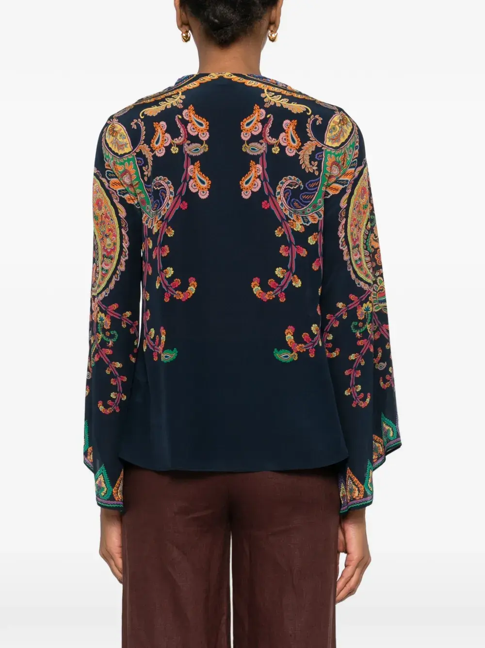 Синий и разноцветный узор "пейсли", широкие рукава, застёжка на пуговицы, отделка