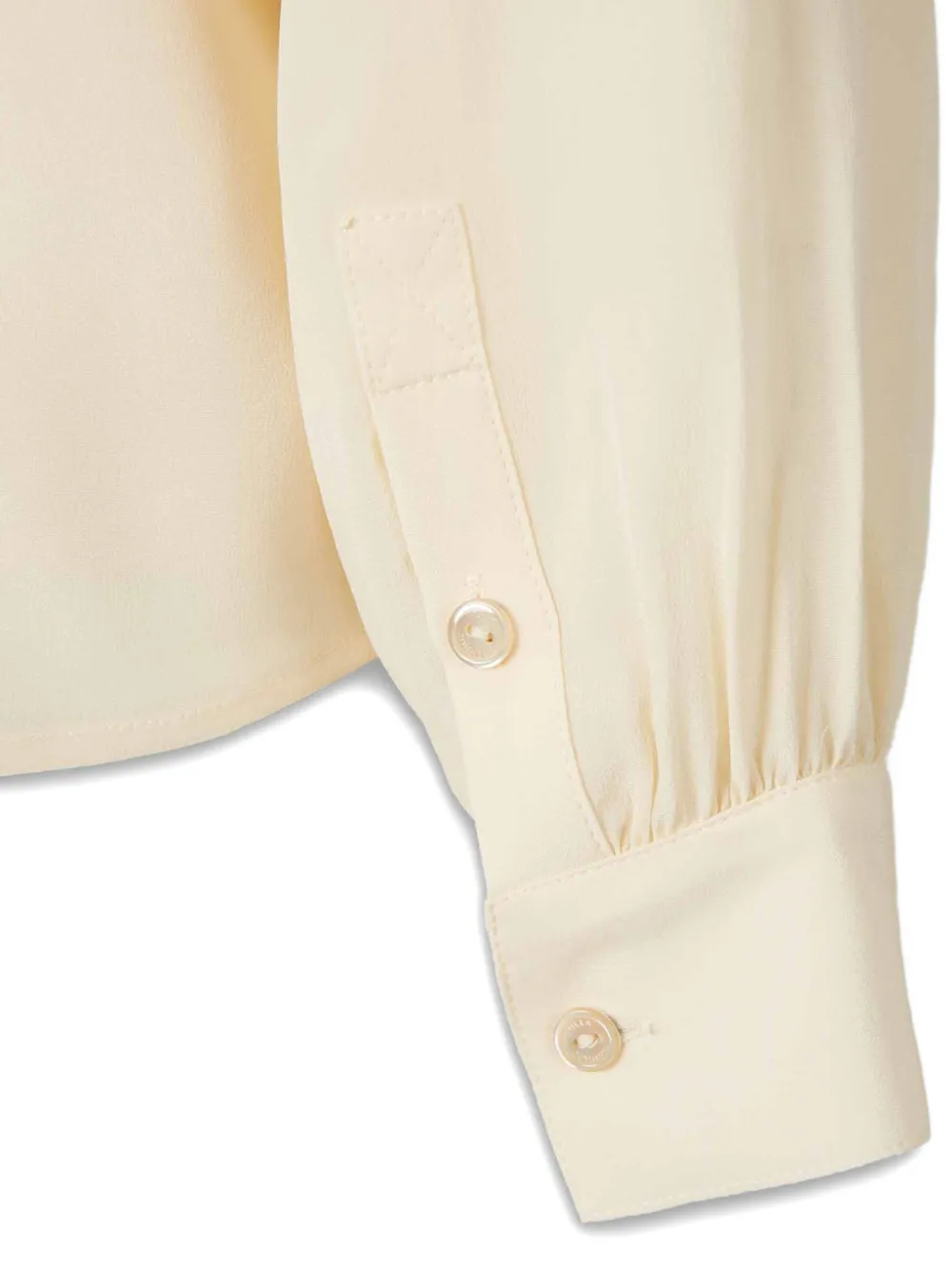 Светло-жёлтый круглый вырез, застёжка на пуговицы, длинные рукава