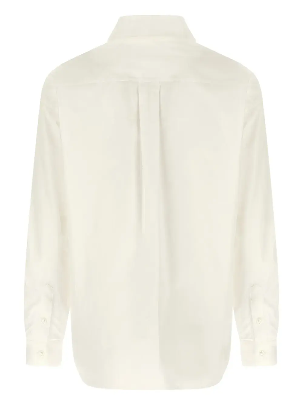 Белая рубашка с плиссировкой сзади, застёжкой на пуговицы спереди, длинными рукавами и манжетами на пуговицах