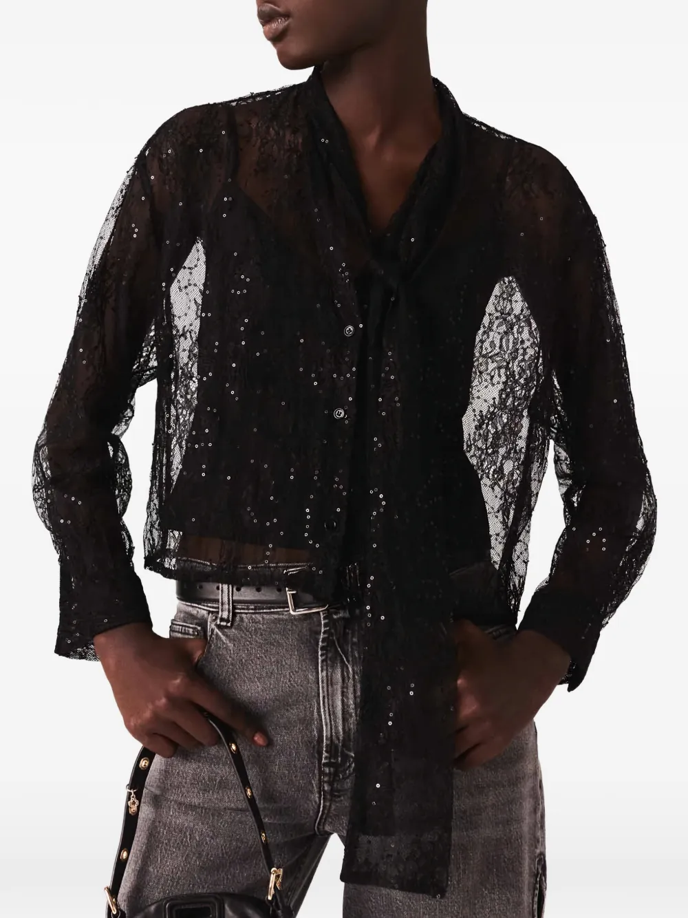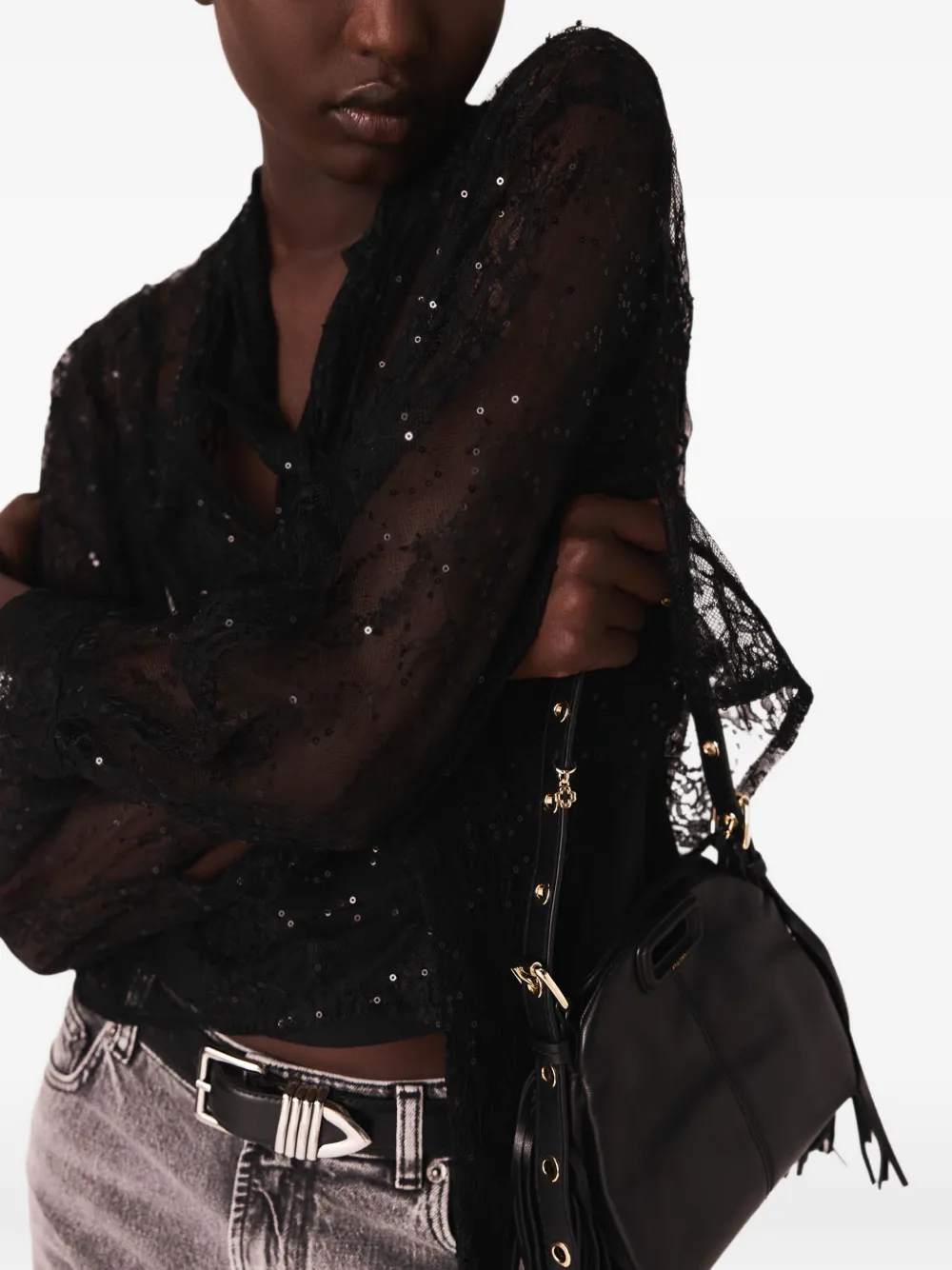 Кружевная рубашка с пайетками Maje, черный