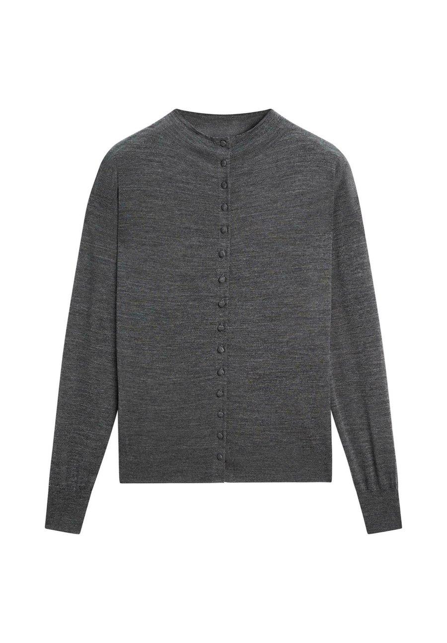 Ребристая отделка. Воротник-стойка. Длинные рукава. Застежка на пуговицы спереди. Кардиган из 100% шерсти. Воротник: воротник-стойка.Материал и уход