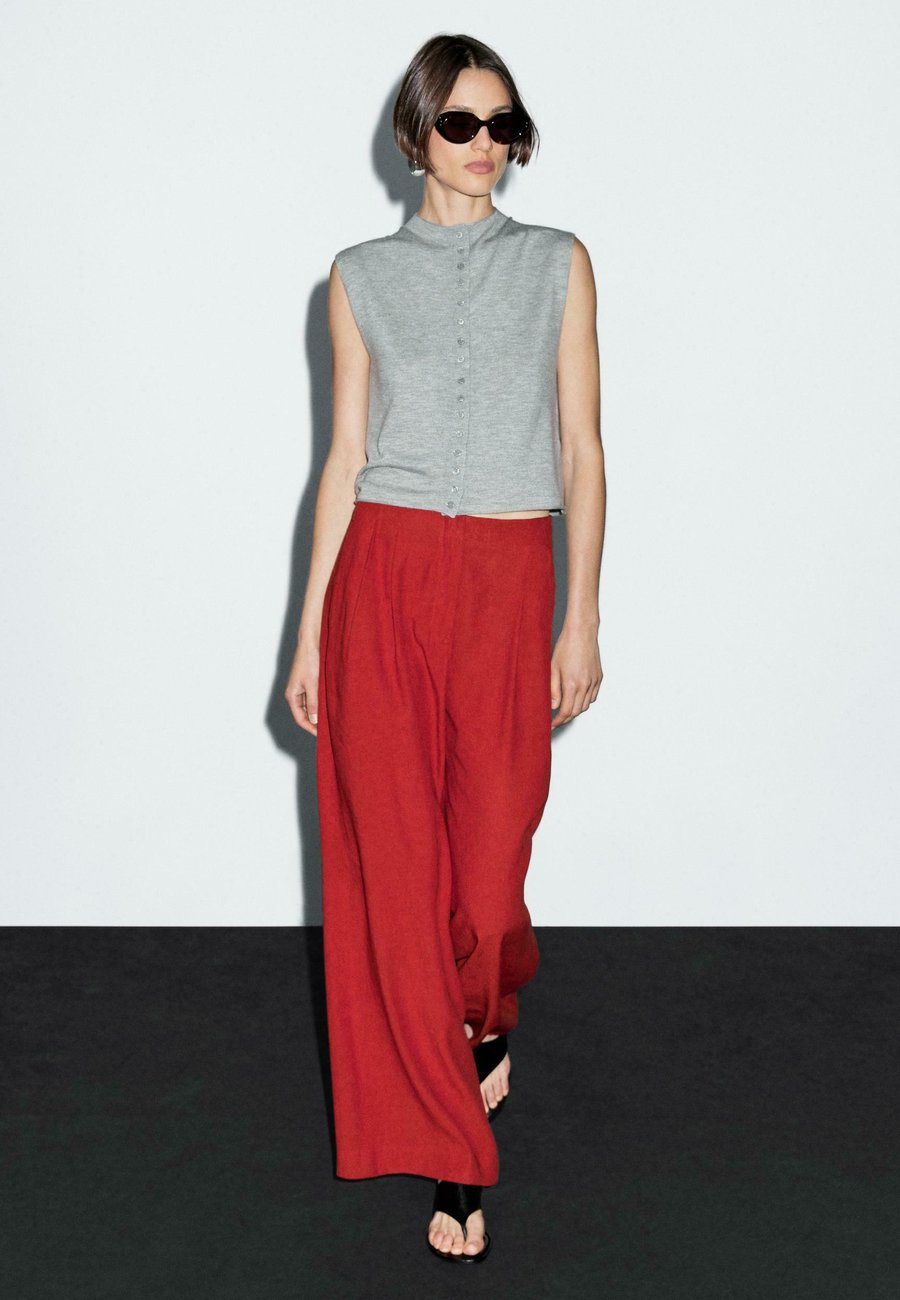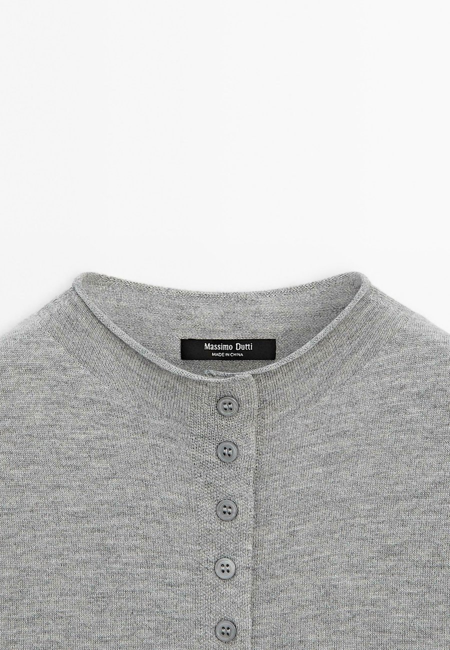 Жилет из шерстяной смеси. Без рукавов. Высокий воротник. Эффект завитка. Застежка на пуговицы спереди. Воротник: стоячий.Материал и уход