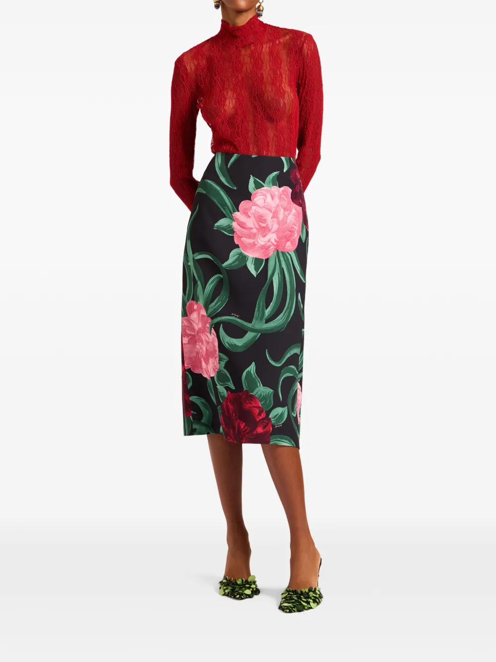 Юбка миди с цветочным принтом La Doublej, черный