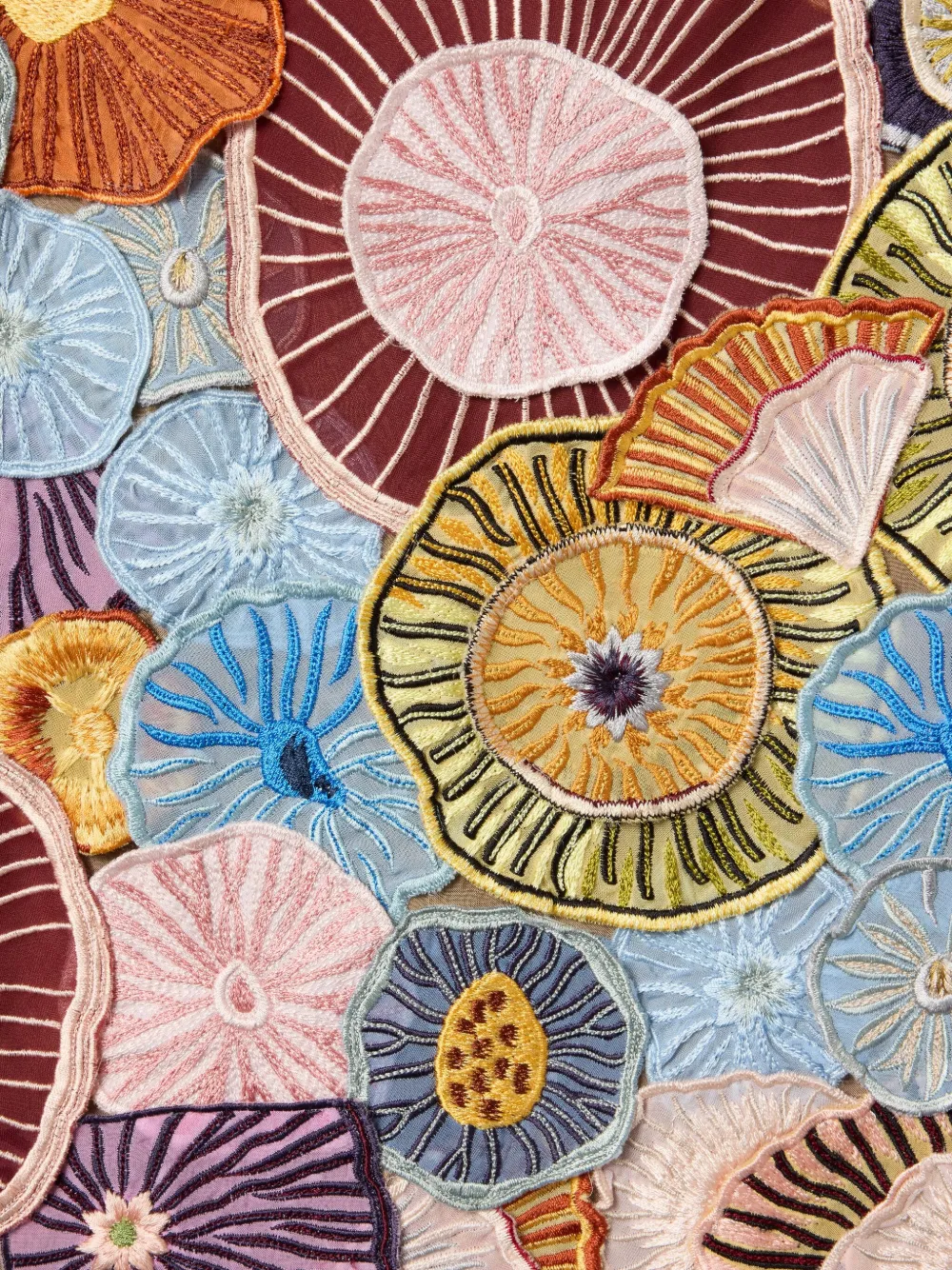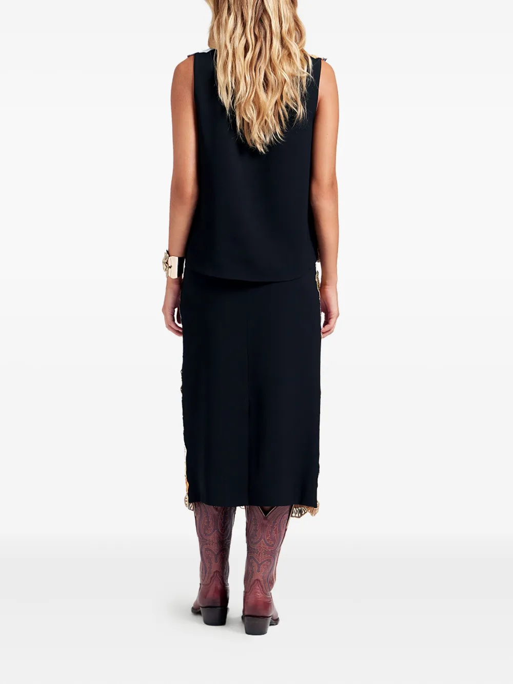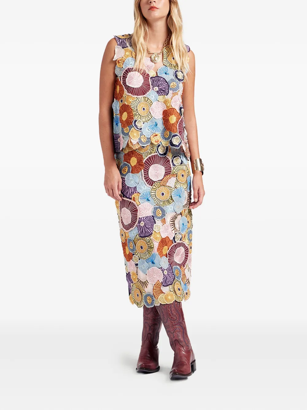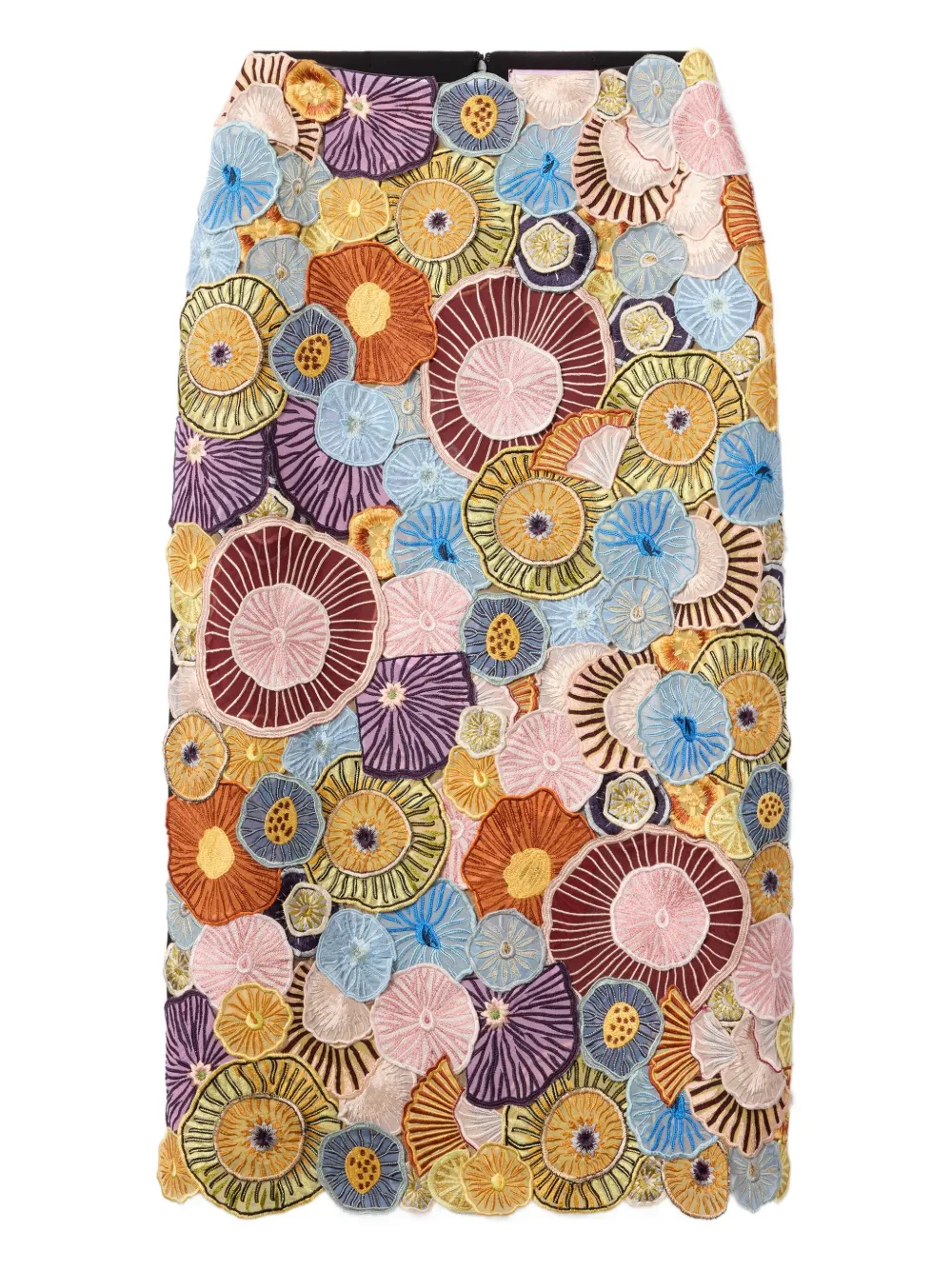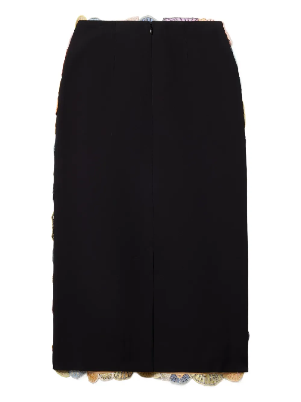 Многоцветные вышитые детали, карандашный крой, разрез сзади, смесь хлопка