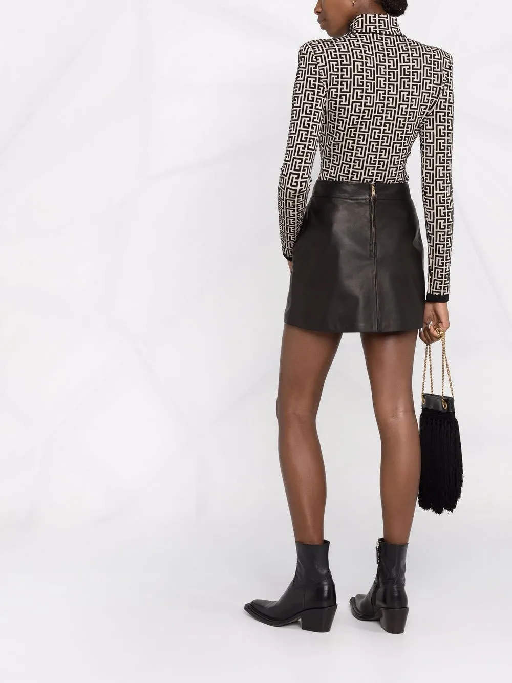 Кожаная юбка мини с люверсами Etro, черный