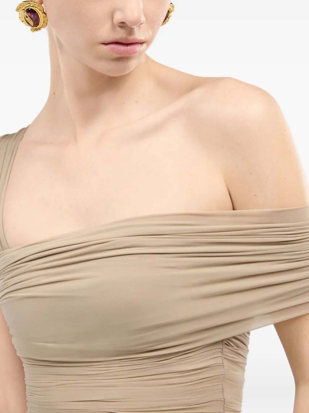 Платье миди на одно плечо с оборками Roberto Cavalli, бежевый