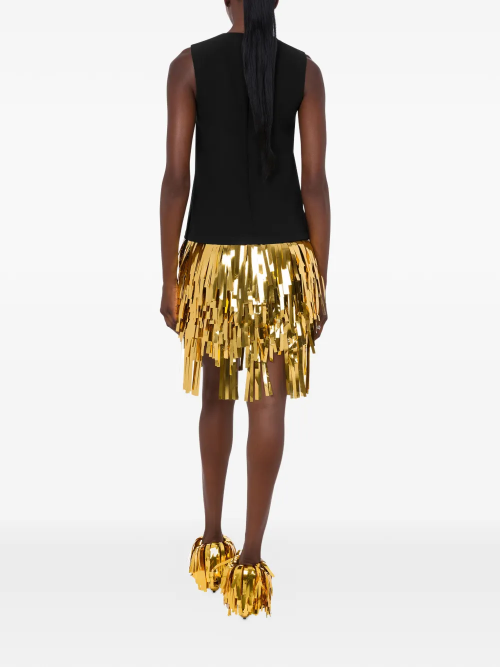 Черная безрукавка с золотистой бахромой и круглым вырезом
