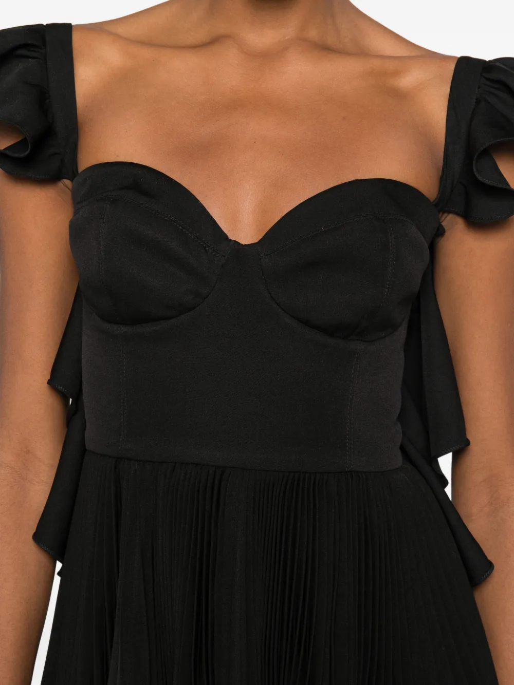 Черная плиссированная юбка, оборчатые бретели, вырез в форме сердца, без рукавов