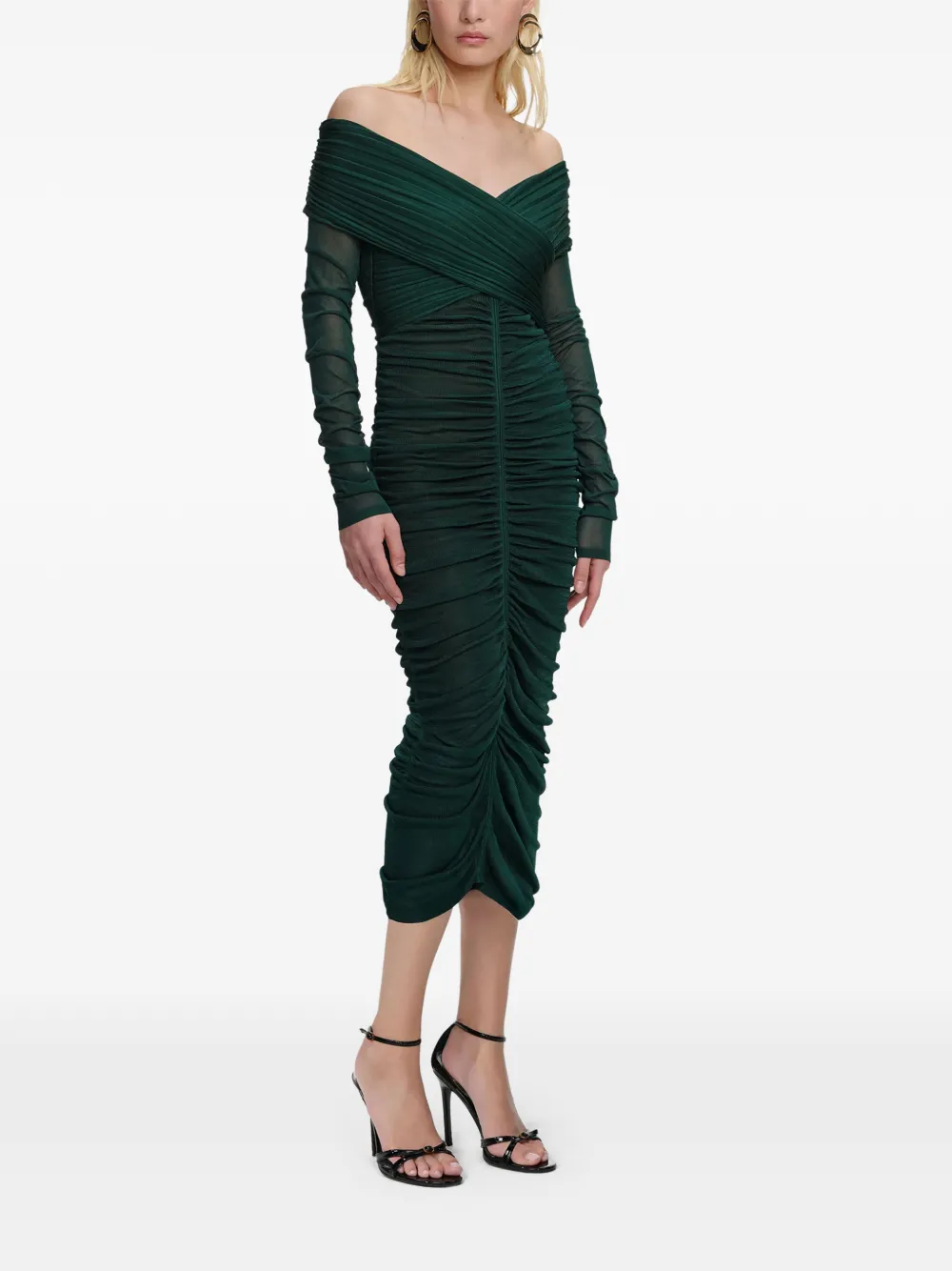 Драпированное платье миди Self-Portrait, зеленый