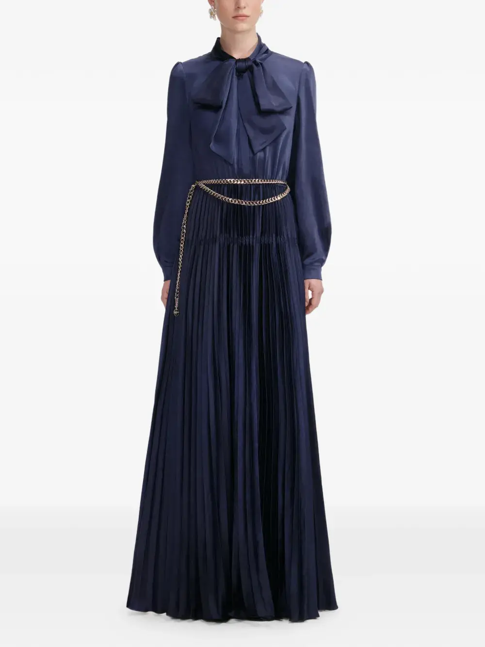 Плиссированное макси-платье с бантом Self-Portrait, синий