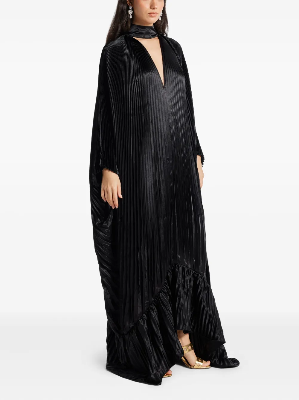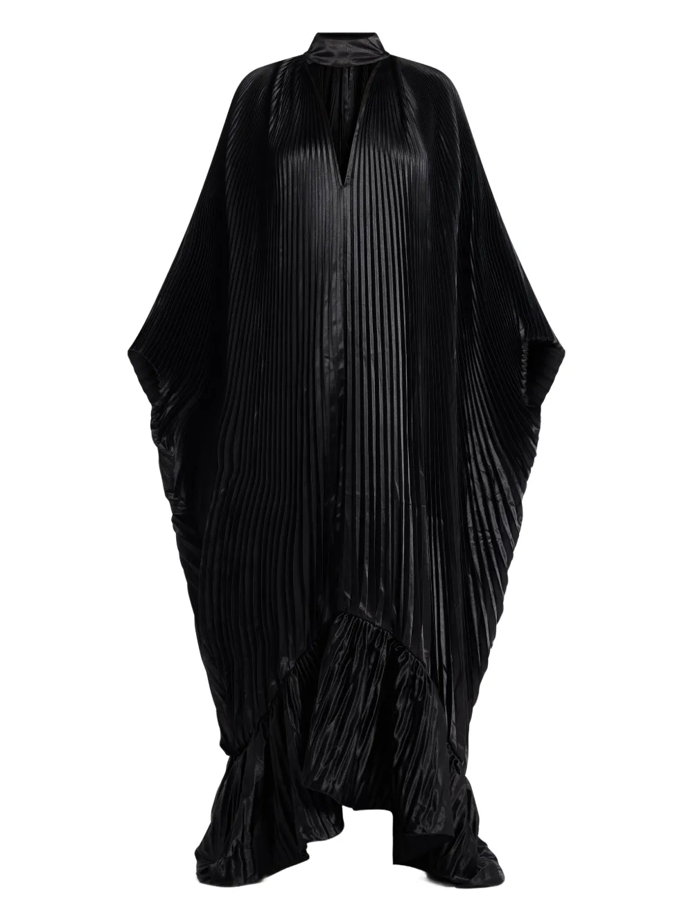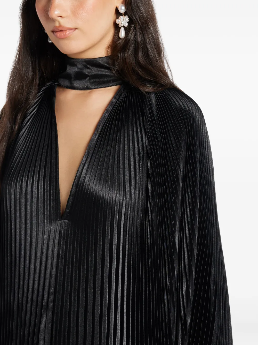 Черный плиссированный дизайн, v-образный вырез, оборчатый подол, длинные рукава