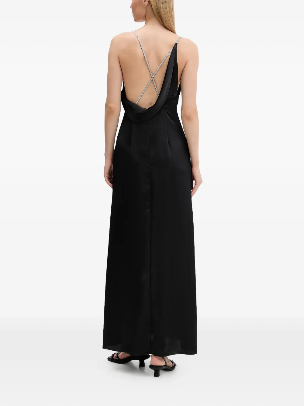 Макси-платье с бретелями, украшенными стразами Hugo, черный