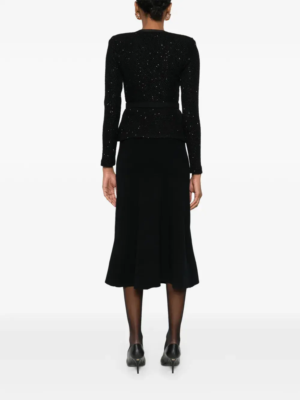 Черный топ с украшением из пайеток, бантом, круглым вырезом и длинными рукавами