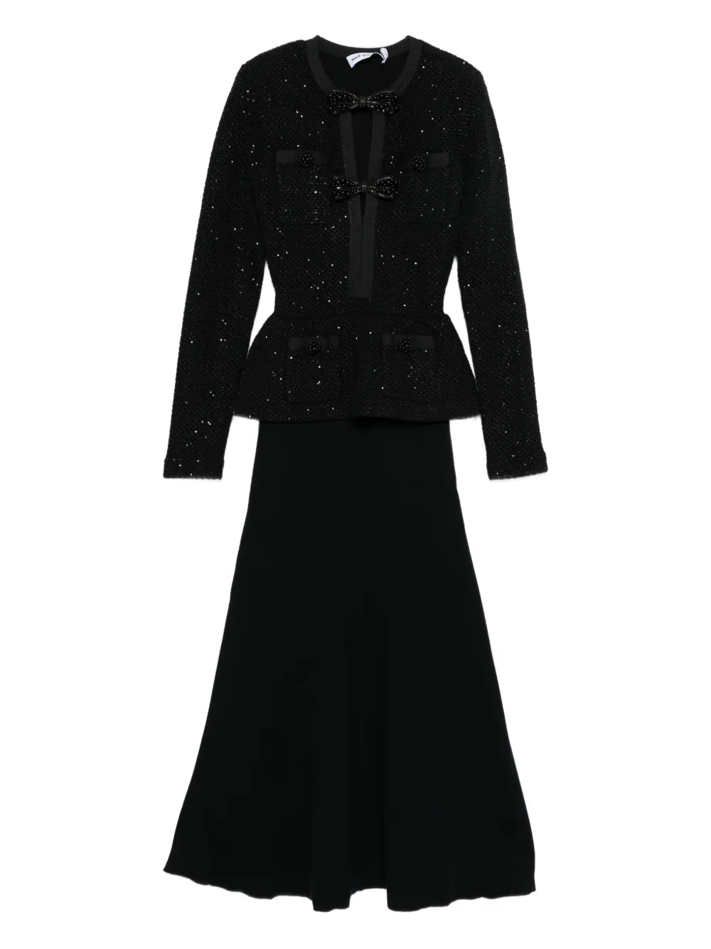 Платье миди с бантом Self-Portrait, черный