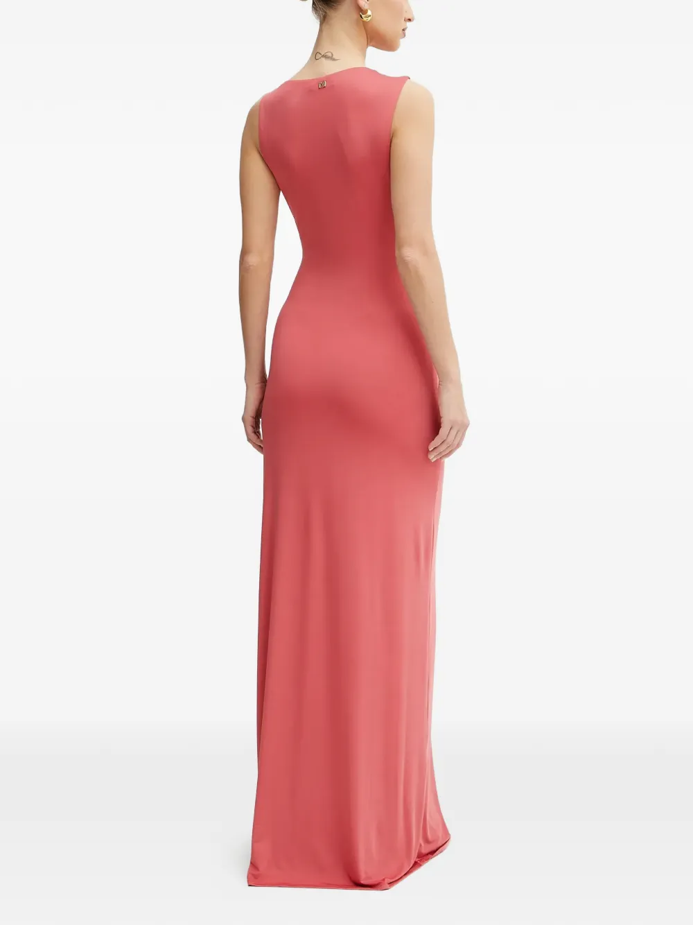 Розовое платье без рукавов с узлом, вырезами и драпировкой