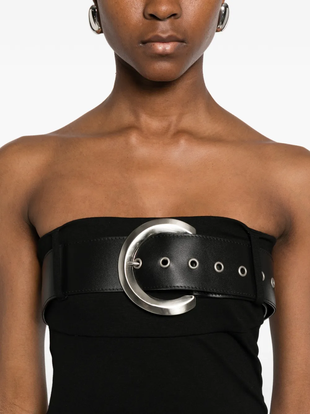 Чёрный бюстгальтер без бретелек с поясом