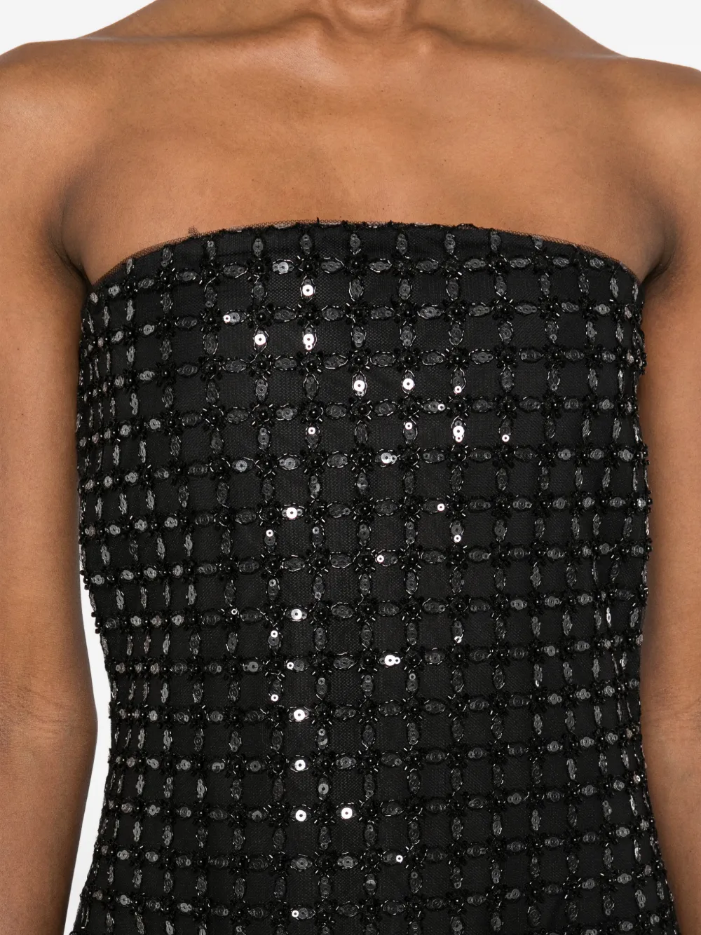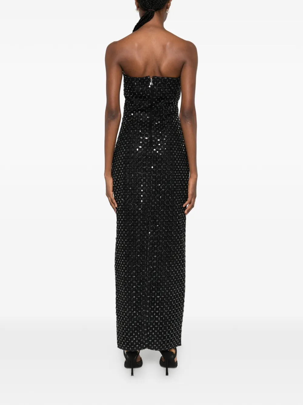 Черное макси-платье с отделкой из бисера и прямым кроем без бретелек