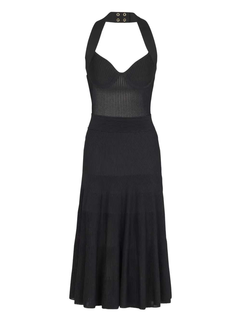 Платье миди с вырезом халтер и складками Balmain, черный
