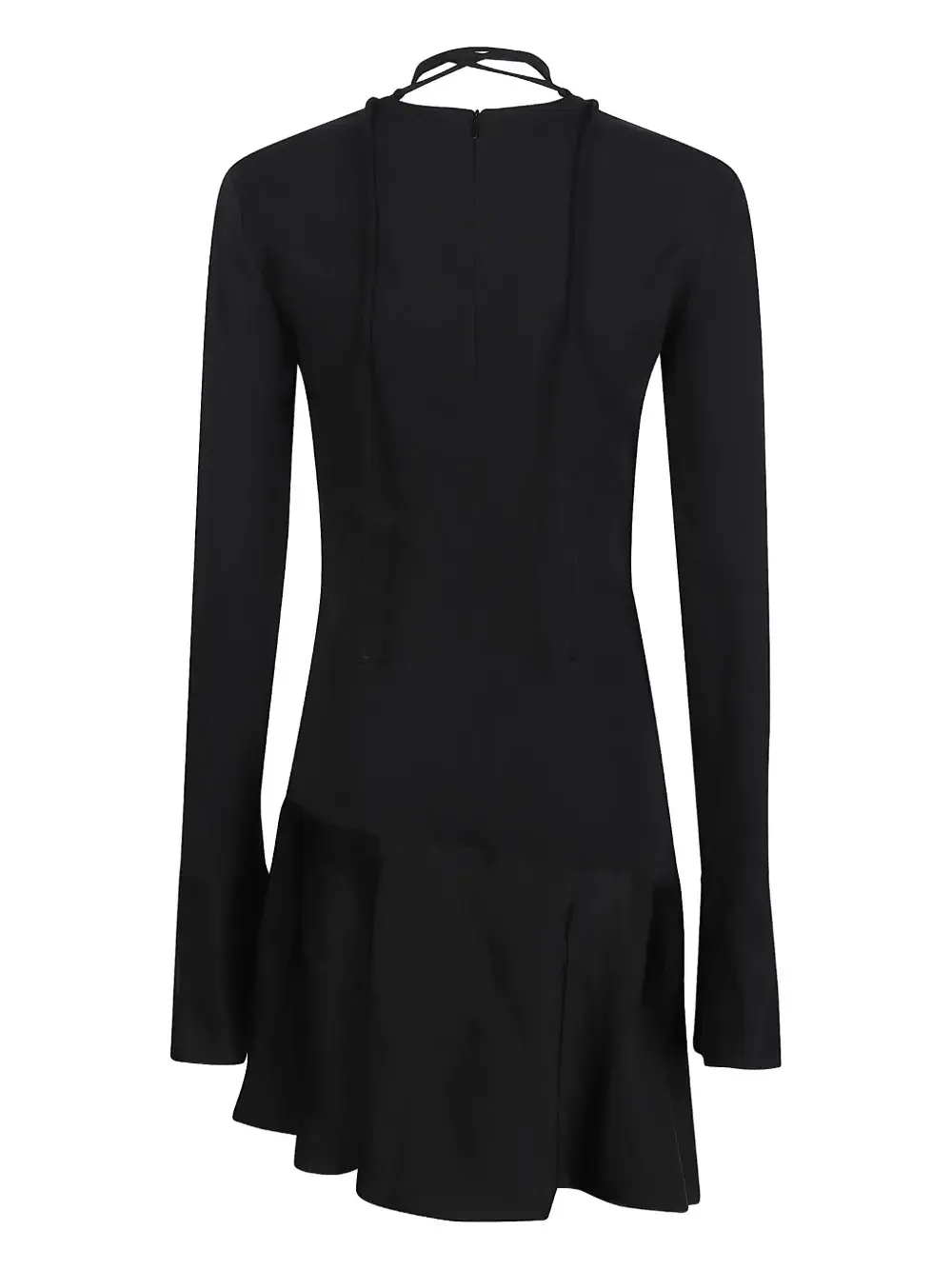 Черное платье с вырезом в форме сердца, длинными рукавами, асимметричным подолом и завязкой сзади