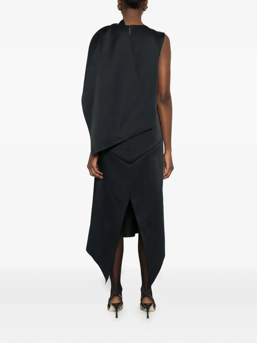 Черное платье с высоким воротом, драпировкой, без рукавов, с панельной конструкцией и застежкой-молнией сзади