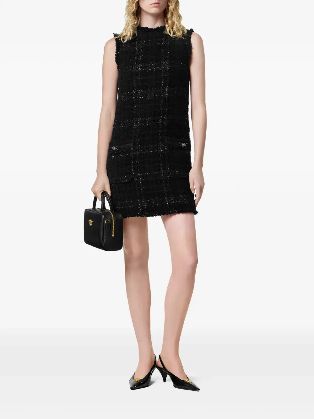 Платье мини в клетку Versace, черный
