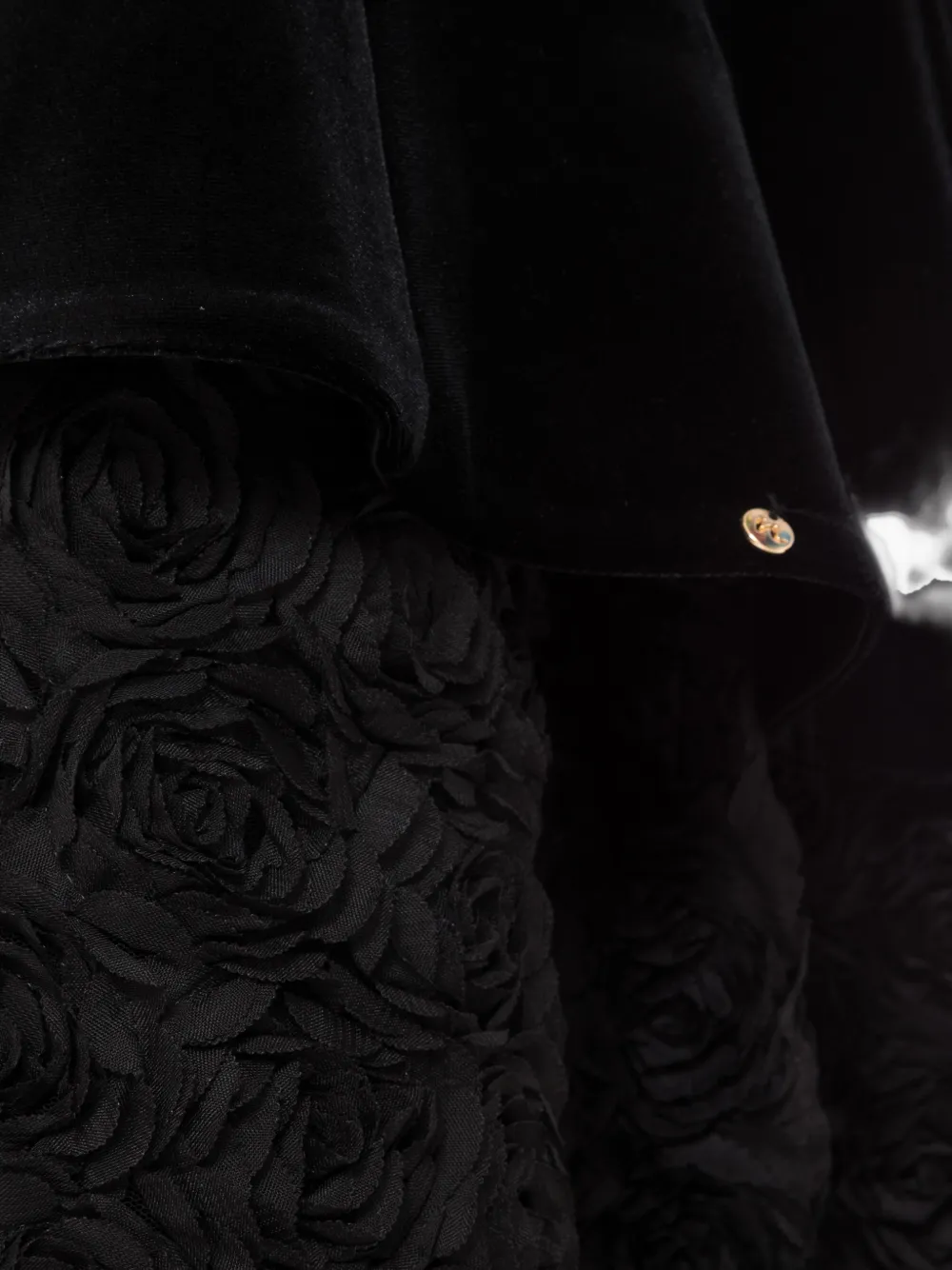 Чёрное платье без бретелек с цветочным декором, подол «русалка», застёжка-молния сзади, вырез «сердечком»
