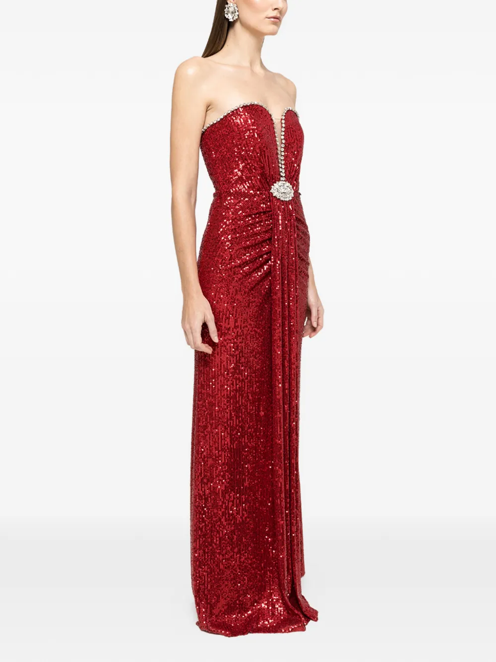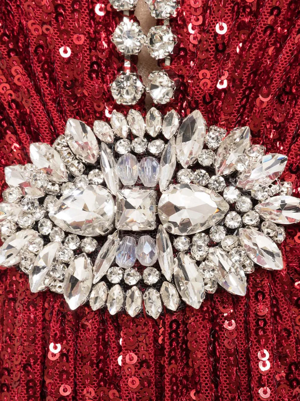 Красный цвет, украшение пайетками, украшение в виде драгоценных камней, застёжка-молния, макси-длина