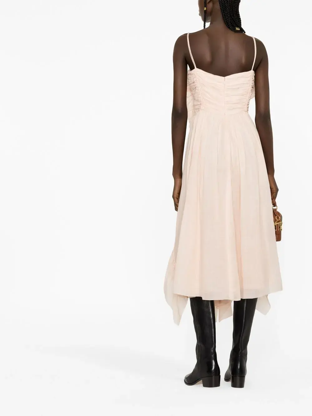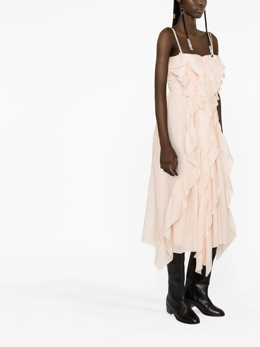 Расцветка Blush Pink, рами, вставки с оборками, без рукавов, узкие бретели, пышная юбка и длина миди. Ответственный выбор: Этот товар как минимум на 50% состоит из материалов, которые признаны более безопасными для окружающей среды или сертифицированы независимыми организациями.