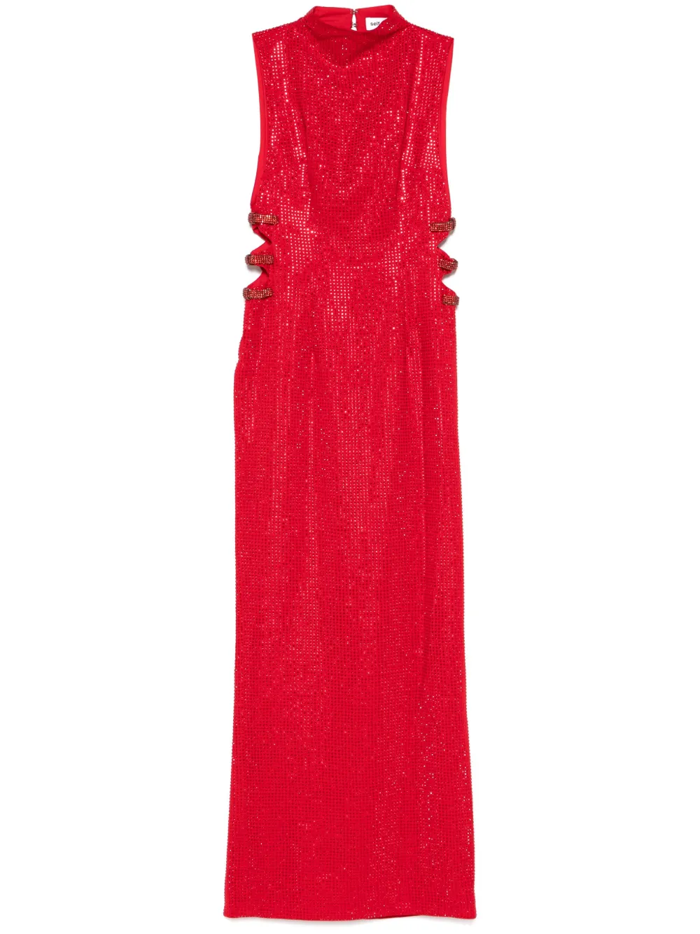Креповое платье макси со стразами Self-Portrait, красный