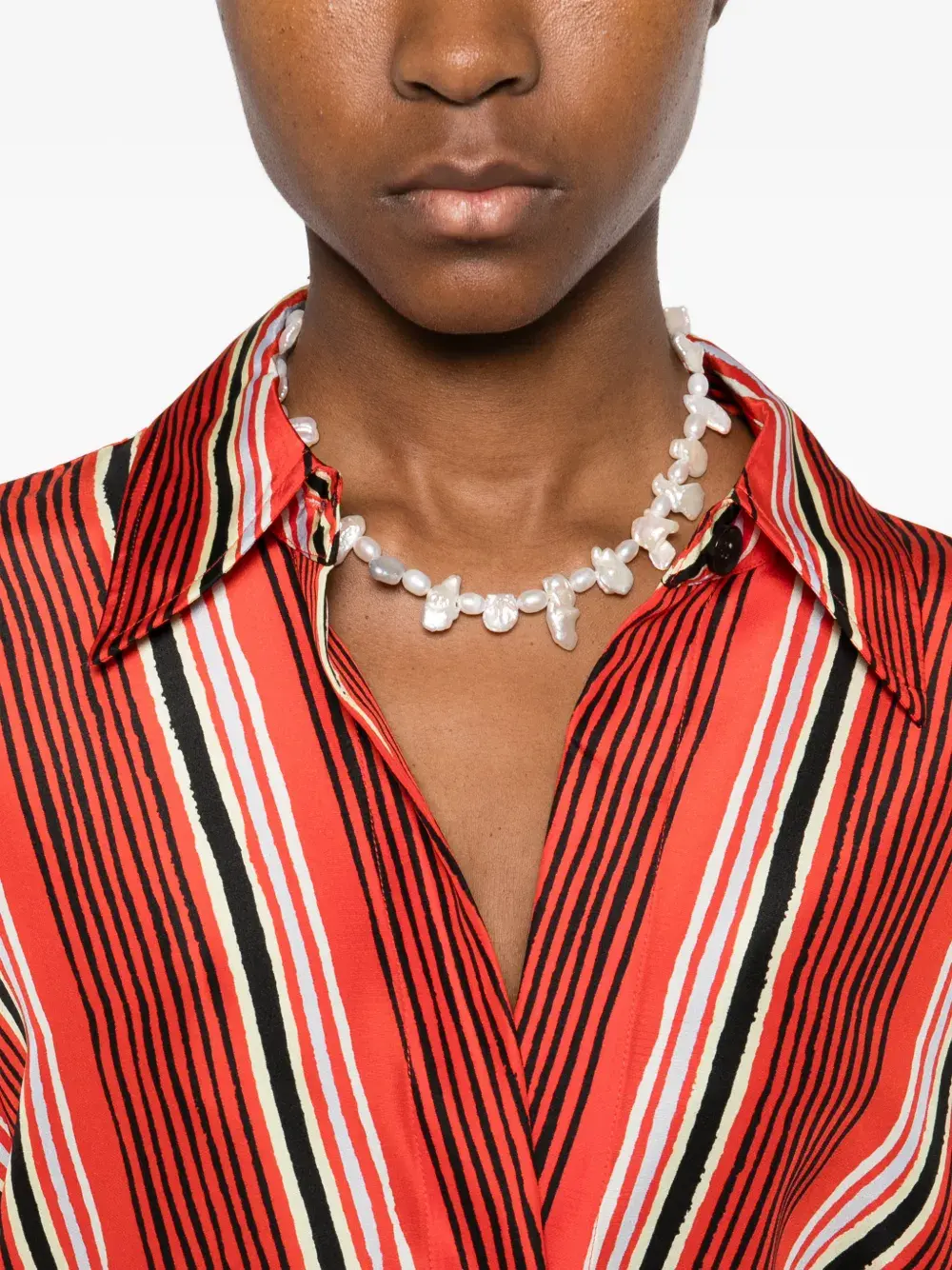 Красная и многоцветная рубашка в полоску с застежкой на пуговицы, длинными рукавами и отложным воротником
