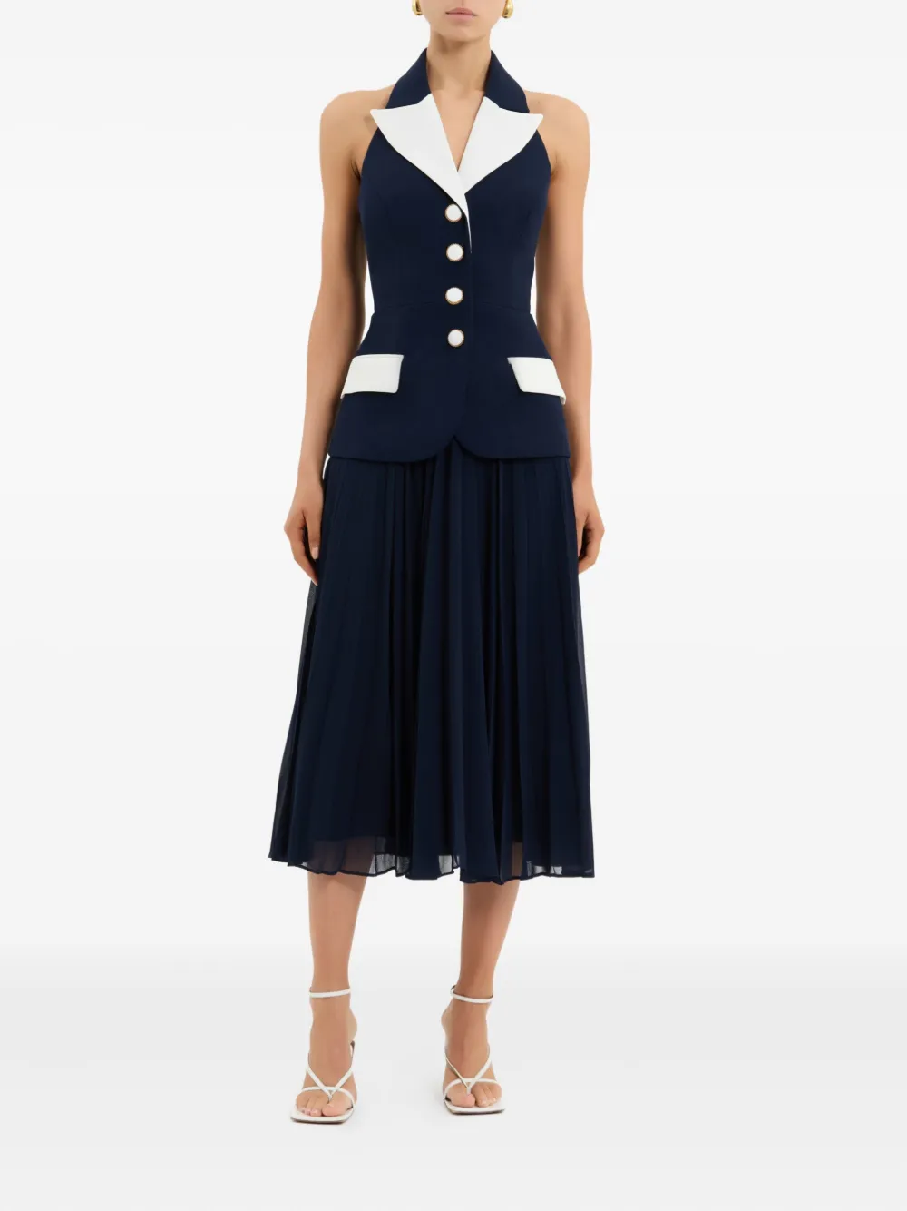 Плиссированное платье миди ULA с вырезом халтер Rebecca Vallance, синий