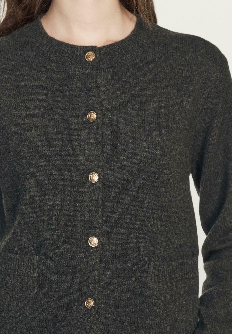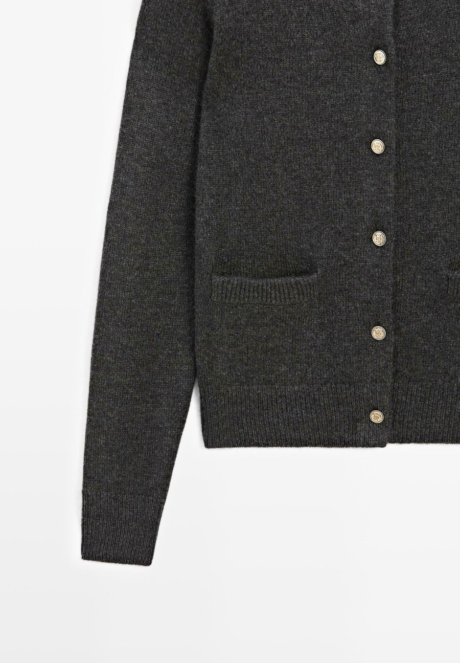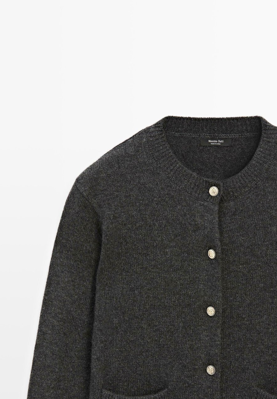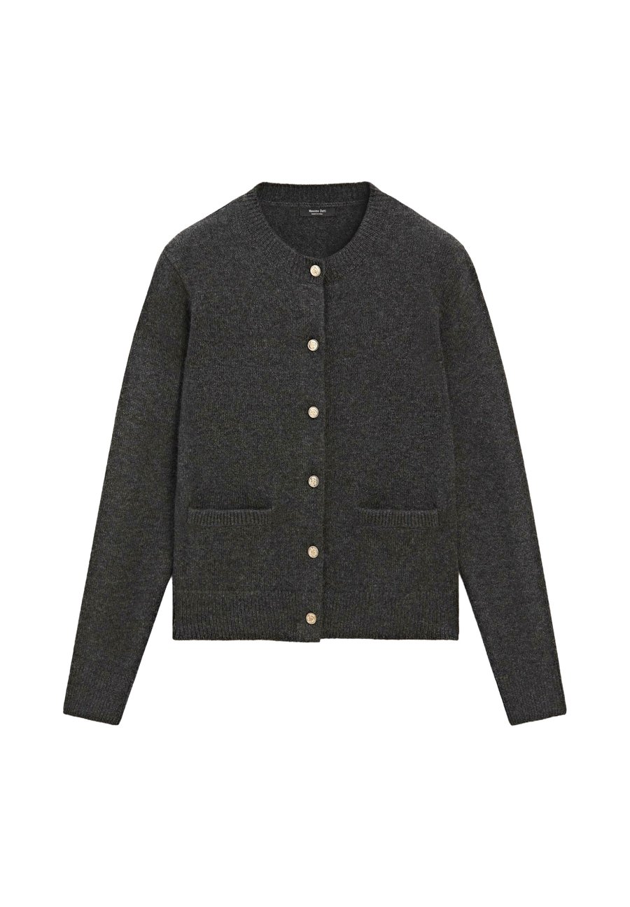 Кардиган из шерстяной смеси. Два прорезных кармана. Ребристая отделка. Длинные рукава. Круглый вырез. Застежка на пуговицы спереди. Вырез горловины: круглый.Материал и уход