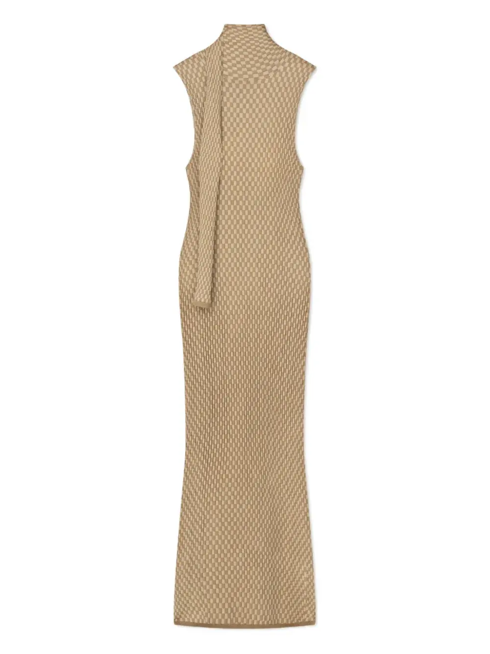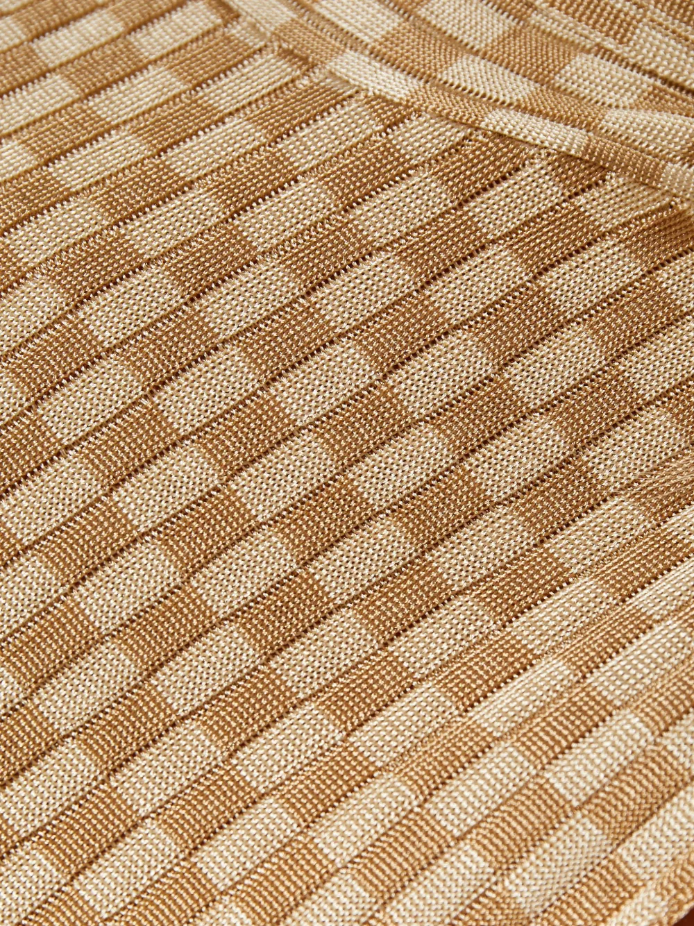 Бежевый топ без рукавов с клетчатым узором, открытой спиной и воротником-стойкой