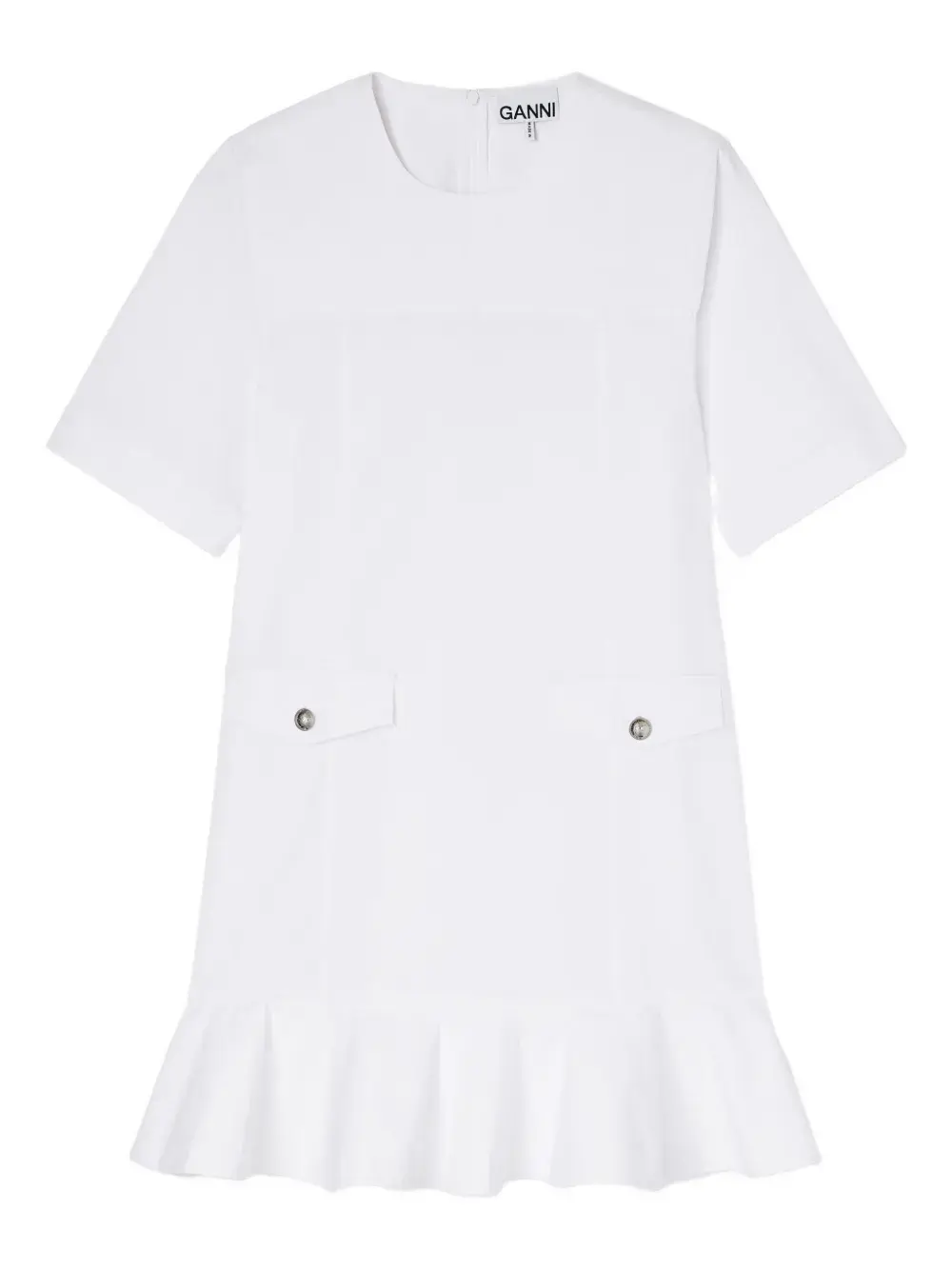 Платье с оборками на кармане Ganni, белый 25 722₽