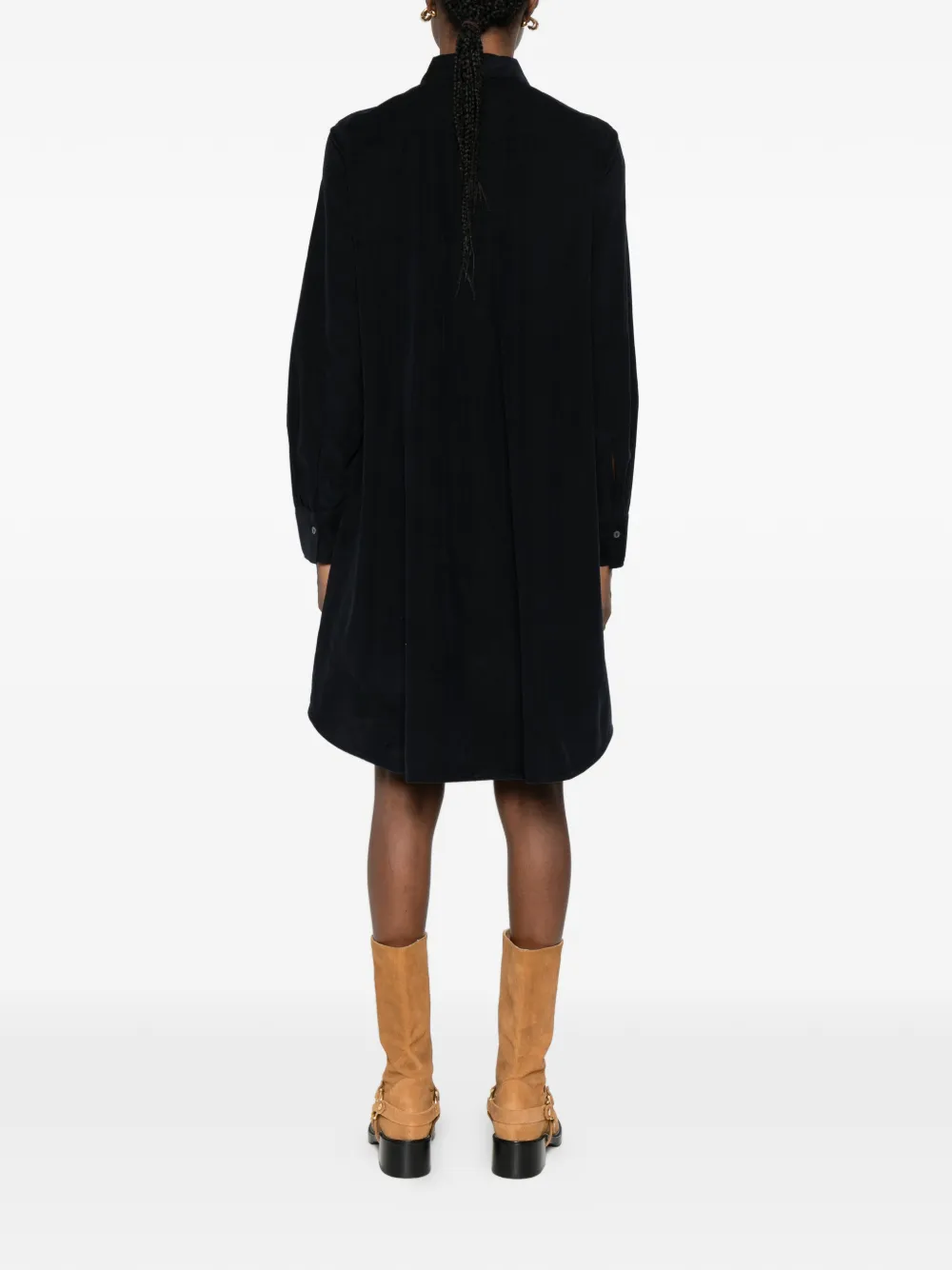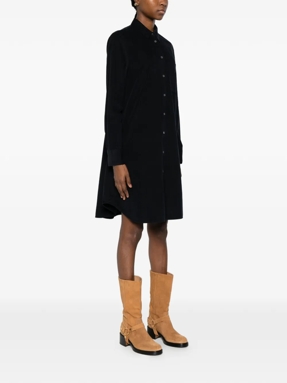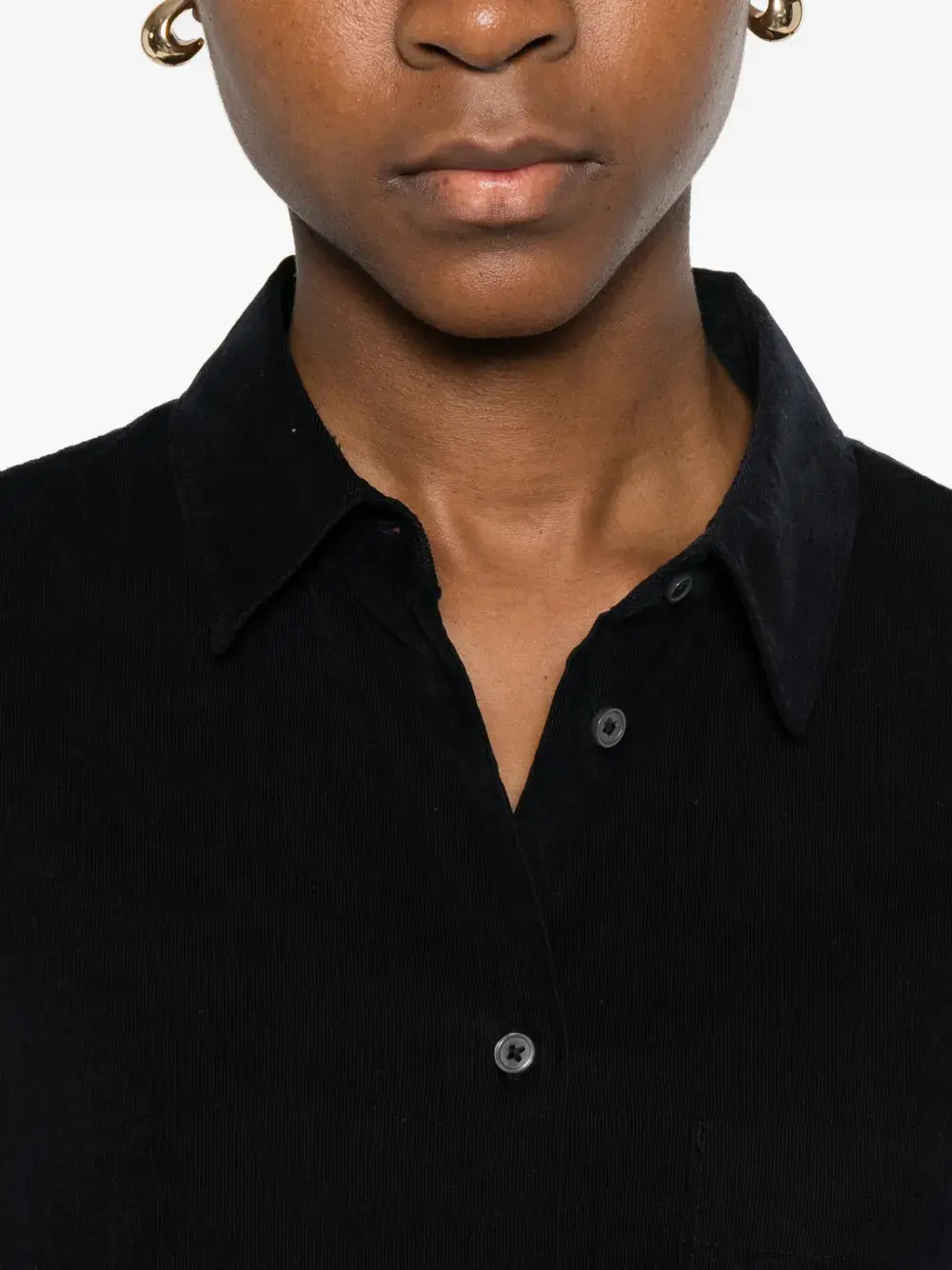 Рубашка глубокого ночного синего цвета с застежкой на пуговицы спереди, нагрудным карманом, длинными рукавами, отложным воротником и манжетами на пуговицах