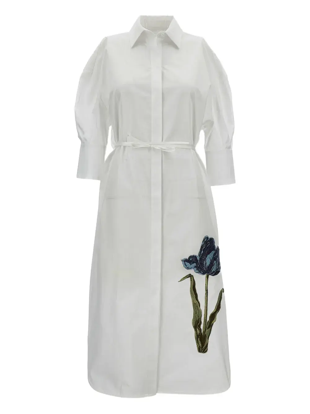 Платье с вышивкой тюльпанов Erdem, белый